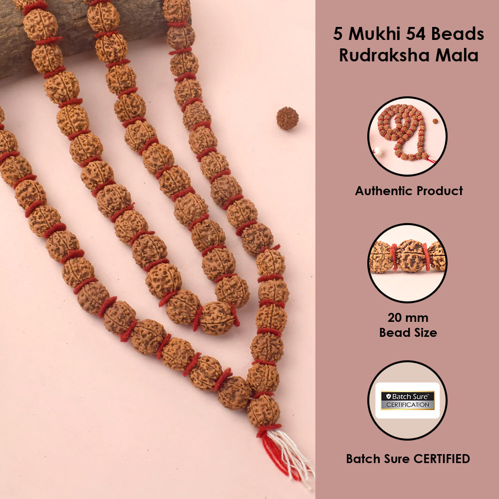 Shop Online 5 Mukhi Rudraksha Kantha Mala 54 Beads | Satvikstore.in – satvikstore.in