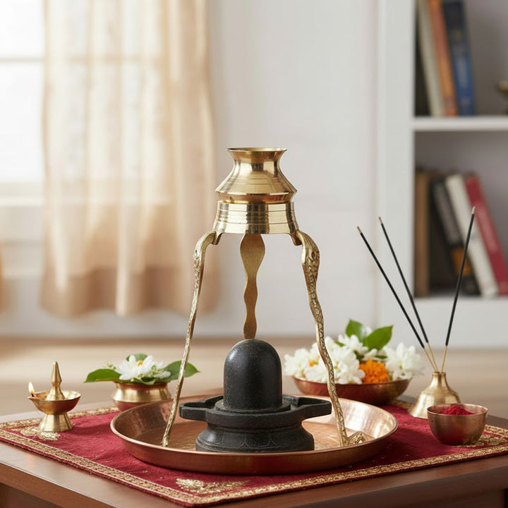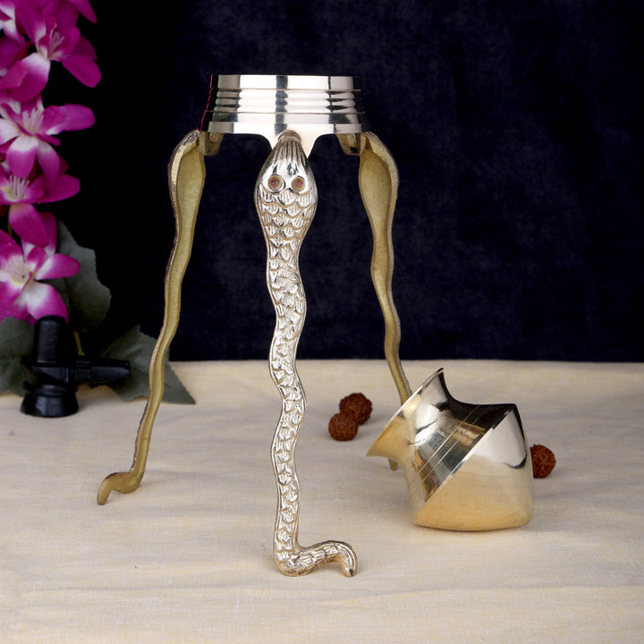 The sturdy and traditional design ensures stability during daily pooja and special ceremonies. Brass is considered auspicious in Hindu worship, known for its durability and spiritual purity, making this stand ideal for long-term devotional use. It is perfectly suited for home temples, pooja rooms, and religious ceremonies, especially during Maha Shivratri and other Shiva-related rituals.