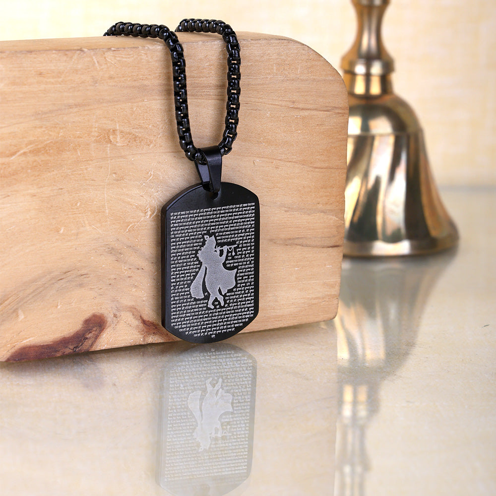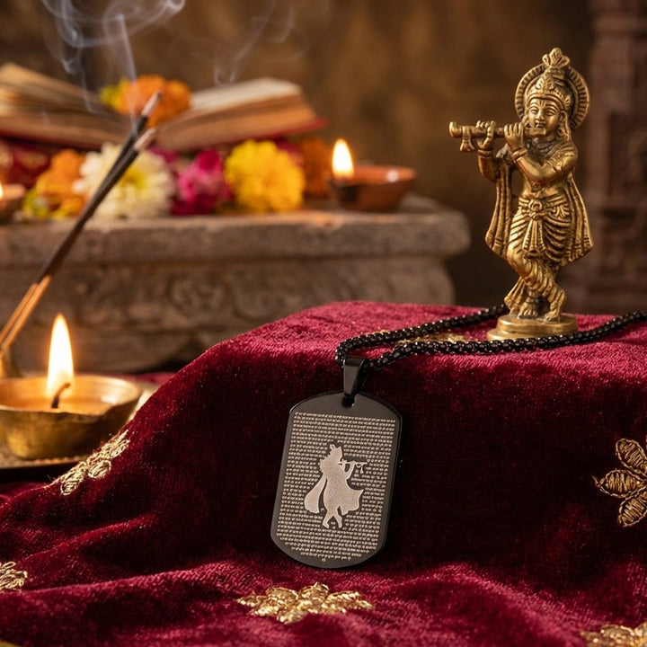 About Product: The Hare Krishna Hare Rama MicroCarved Black Pendant is a spiritually uplifting accessory featuring the sacred Hare Krishna Hare Rama Mahamantra, finely micro-carved with precision detailing on a premium black finish. This timeless mantra is known for bringing peace, devotion, and divine consciousness into the wearer’s life.