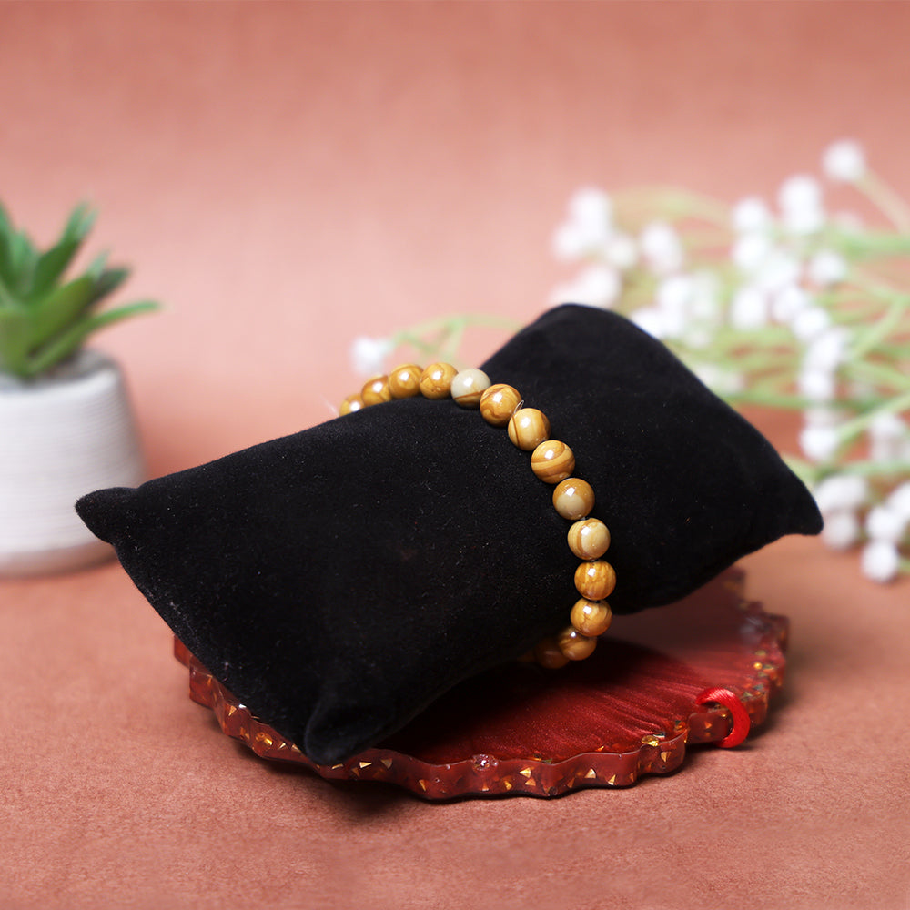 About Product: The Camel Jasper Bracelet is a stone of endurance, grounding, and emotional stability. Its earthy golden-brown tones resemble the desert sands, symbolizing resilience, patience, and balance — just like the camel that thrives in harsh conditions. Camel Jasper encourages inner strength and helps you stay composed in times of stress or emotional turmoil.