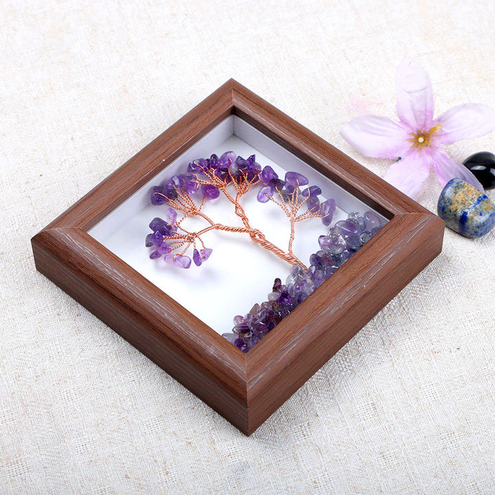 Amethyst is known as the stone of calm and spiritual awareness, believed to reduce stress, enhance intuition, and promote mental clarity. Displaying this tree frame in your home or office helps create a serene environment while adding an elegant spiritual accent to your décor.