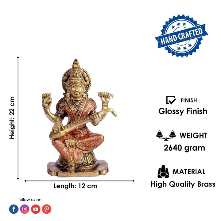 • Material: The SaraswatiΒ Mata Murti is made from High-Quality Brass Material