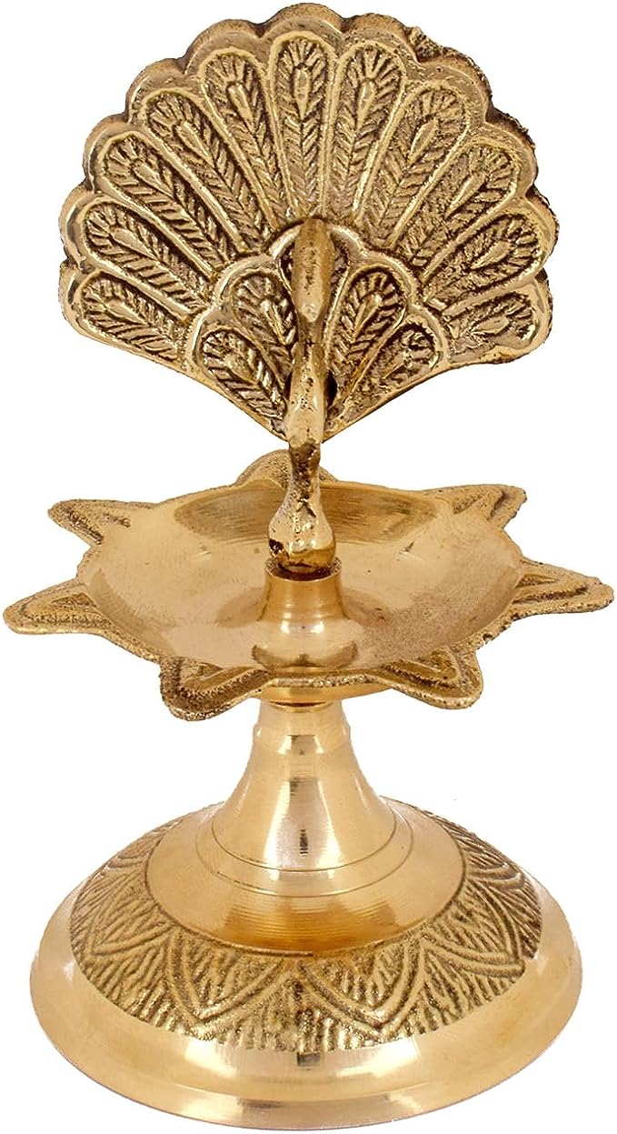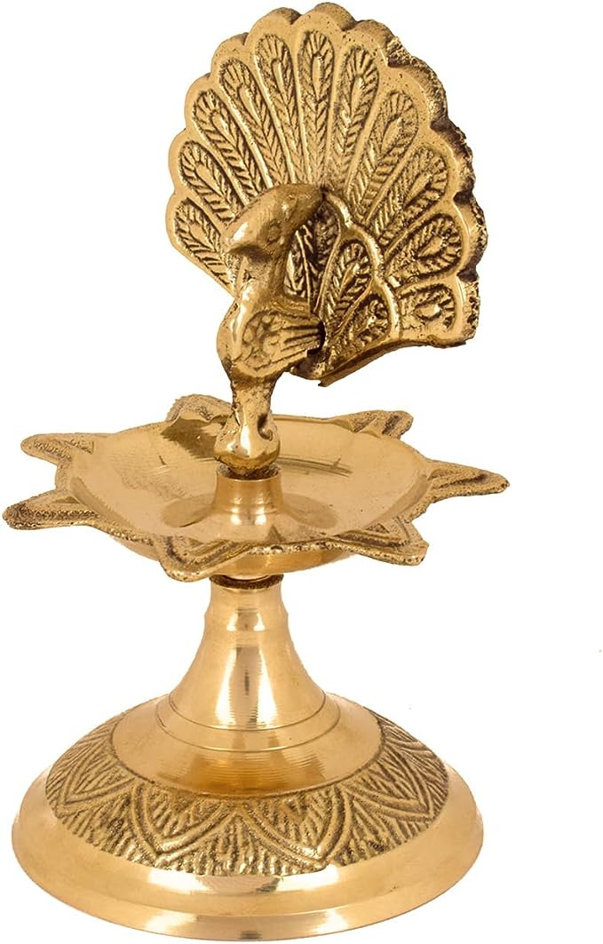 • Item Name: Handcrafted Brass Flying Peacock Kerala Samai Deepam Puja Diya