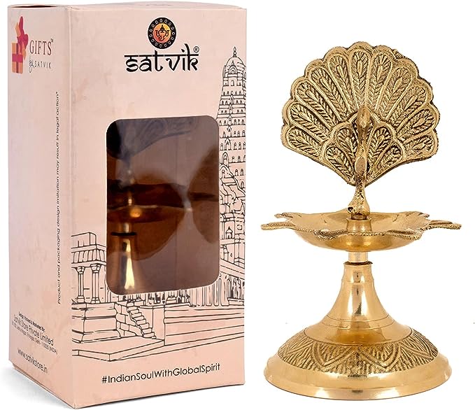 • About Product: Introducing the captivating Brass Kerala Peacock Diya, exclusively available at Satvikstore.in. Handcrafted with meticulous attention, this exquisite diya lamp showcases intricate peacock motifs symbolizing beauty and grace. Perfect for inaugurations, events, and Diwali decor, it illuminates spaces with a warm and inviting glow. Embodying divine blessings, it enhances sacred pooja samarohs. This diya lamp's regal charm makes it a striking decor piece for year-round elegance. Elevate your living spaces with the Brass Kerala Peacock Diya from Satvikstore.in, embracing tradition and spirituality. Illuminate your life with this enchanting symbol of artistry, grace, and prosperity, available exclusively for you.