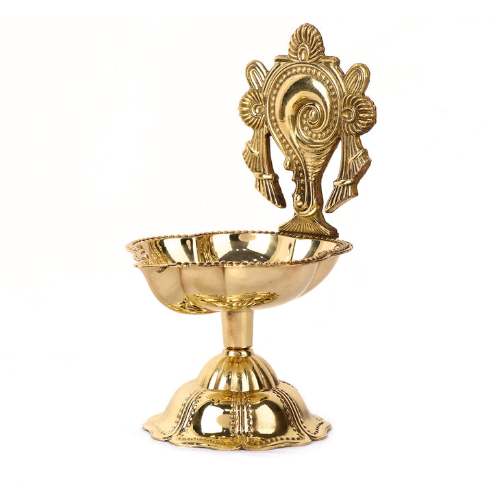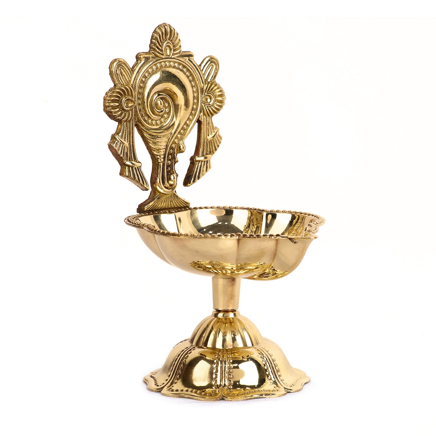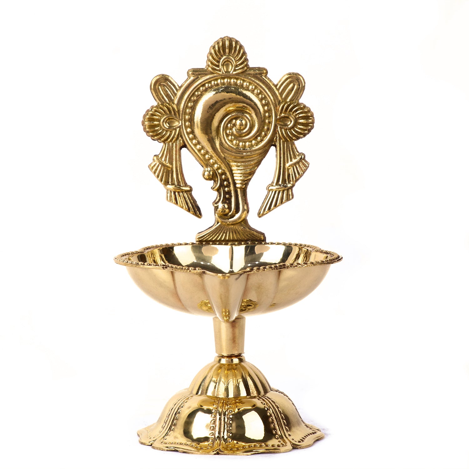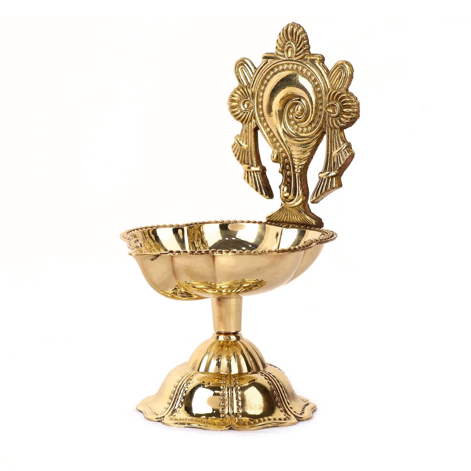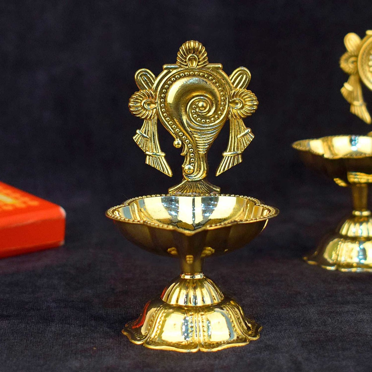 Buy Magnificent Designer Shankh Brass Diya for Pooja | Satvikstore.in – satvikstore.in