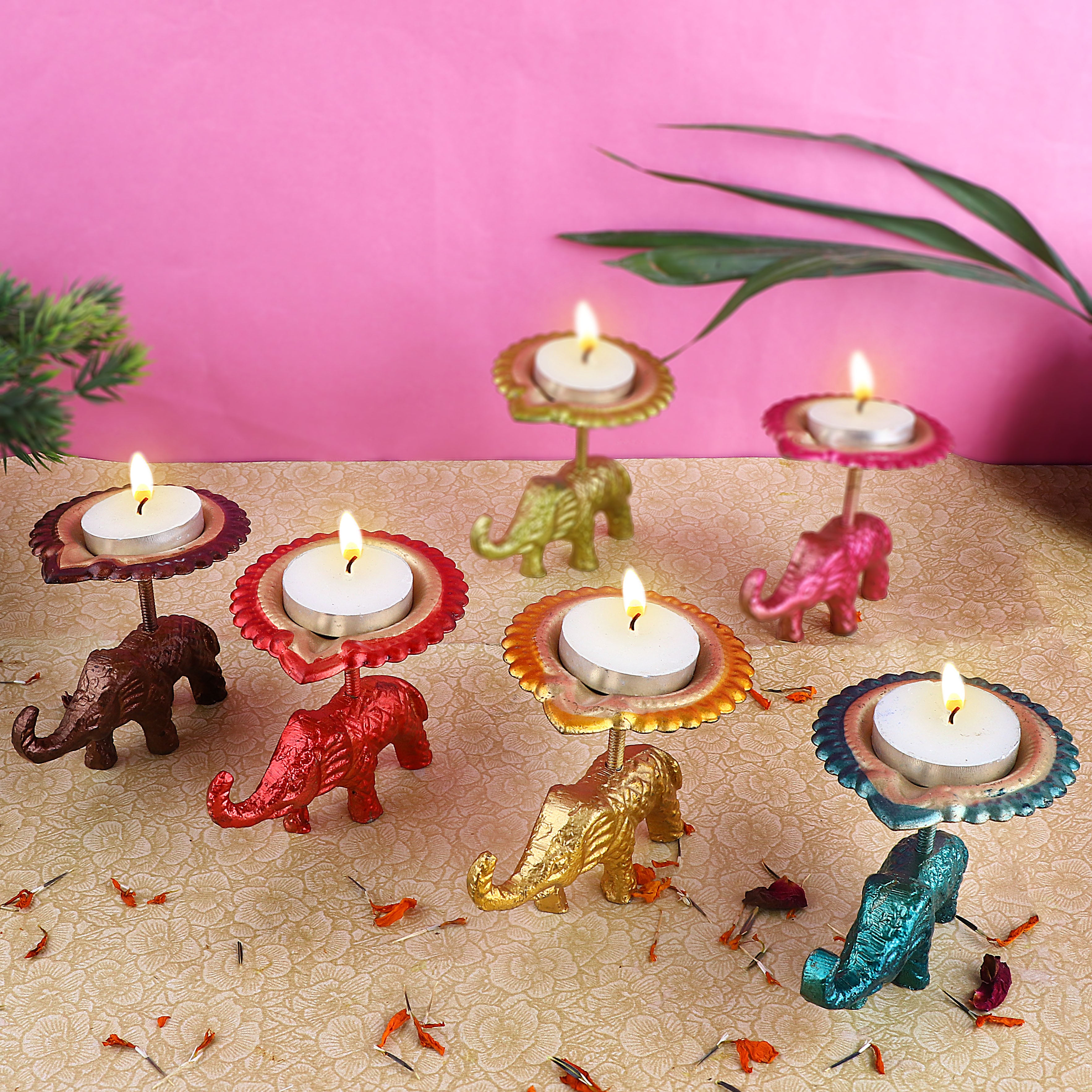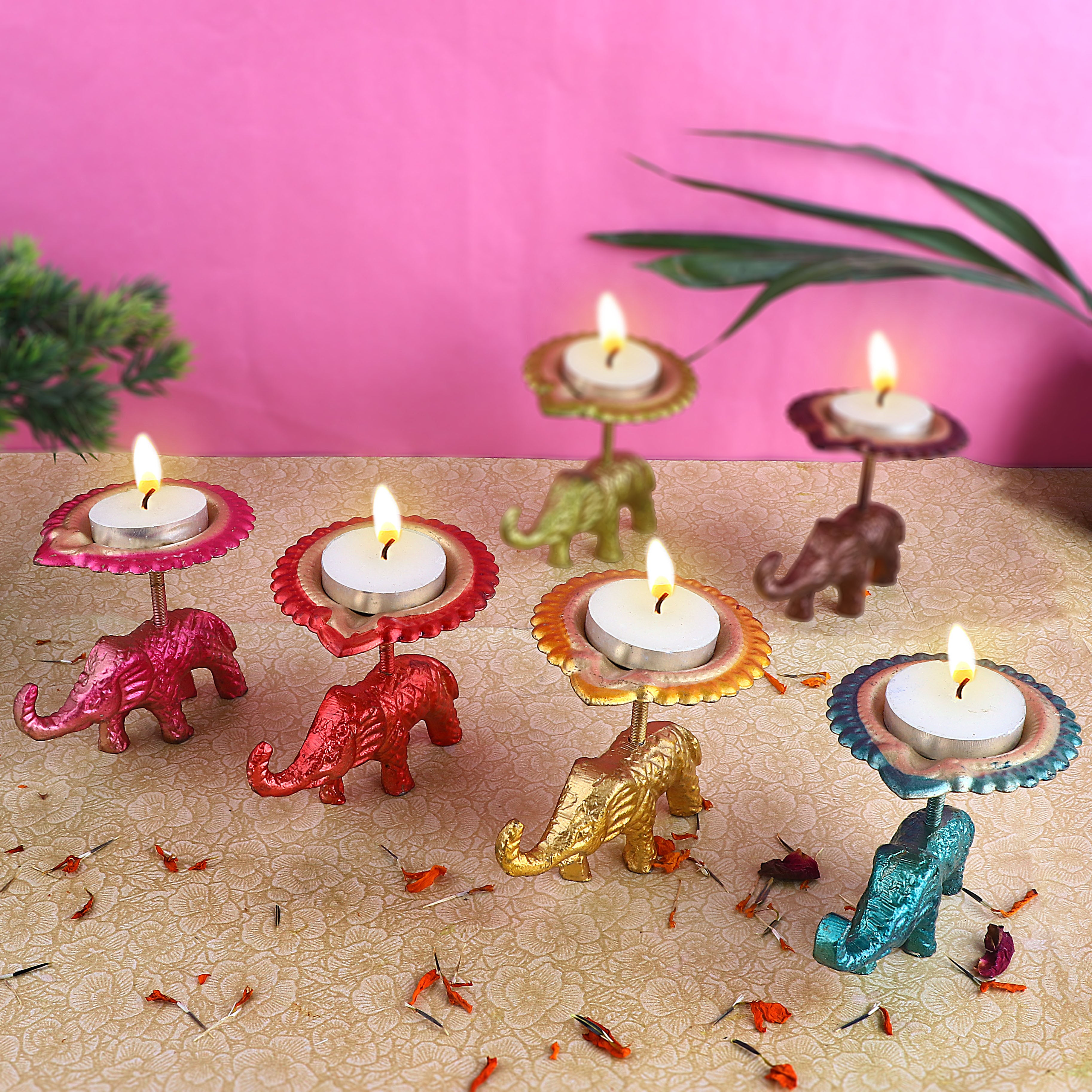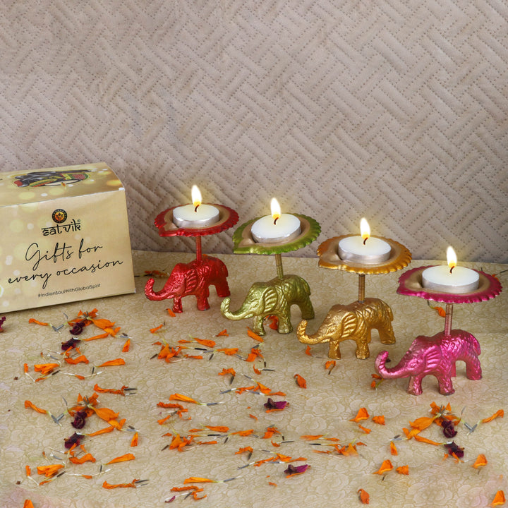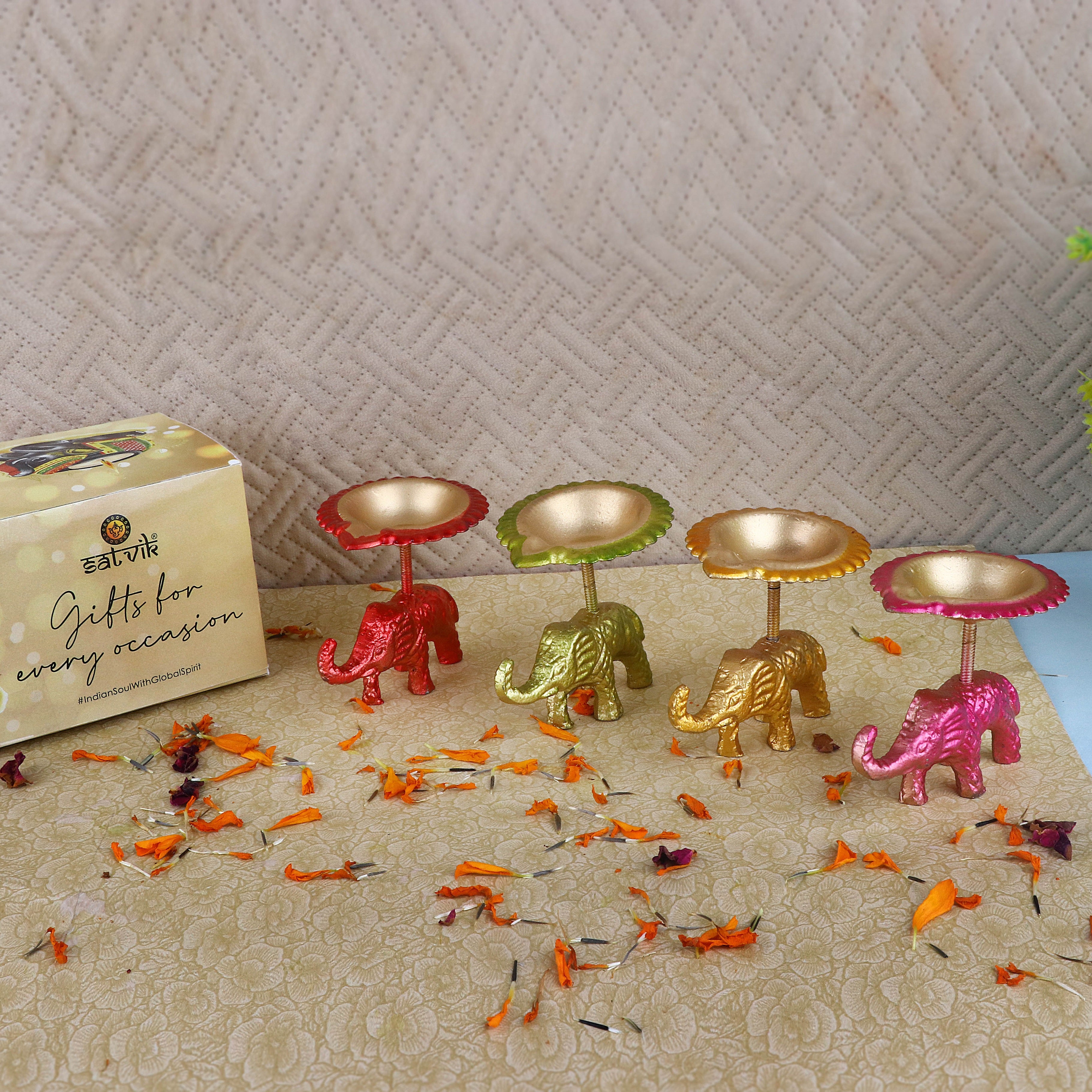 Buy Online | Metal Elephant Diya - Assorted(pack of-4)| Satvikstore.in – satvikstore.in