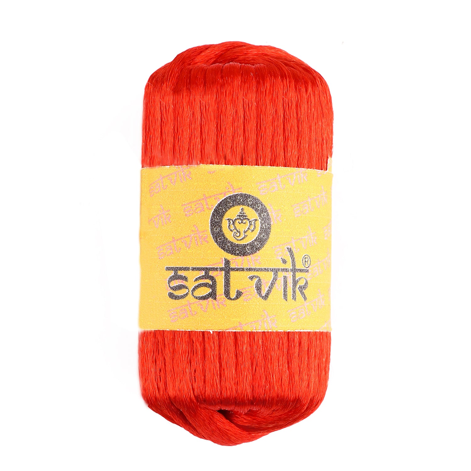 About Product: Satvik Store Presents Presenting 100% Pure Silk Moli/ Kalawa. Mouli or Kalawa is a Silk red thread roll considered to be very sacred and used in all religious purposes of the Hindus. The Mouli thread is an integral part of any puja. Silk Kalawa is the sacred Hindu thread also called mauli in Hindi. It is worn while performing Hindu rituals like Yajnaor Puja. It is tied by a priest on the wrists of all the people attending the prayer ceremony. Kalava is tied on right hand of males and unmarried females, and on left hand of married females. Sometimes it has small yellow parts in between the mostly red string. It sometimes has knots which are tied up while reciting Sanskrit mantras to invoke Brahman and is worn to ward off evil from the person who wears this red thread. Once tied, one is not supposed to untie this thread for a particular period depending upon the type of ritual. Some people tie them up till next sankalp taken. However, it usually continues for a week after puja. Many follow this for two to four weeks.
