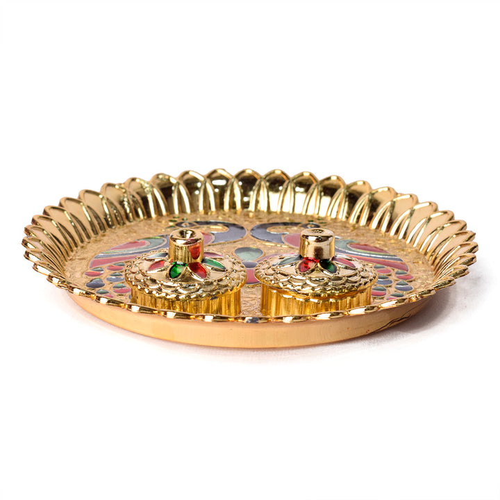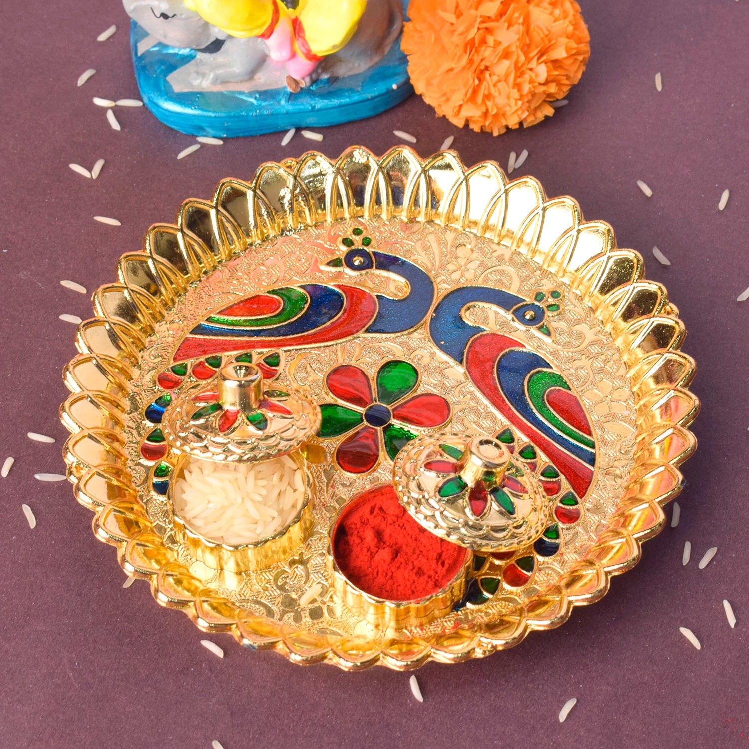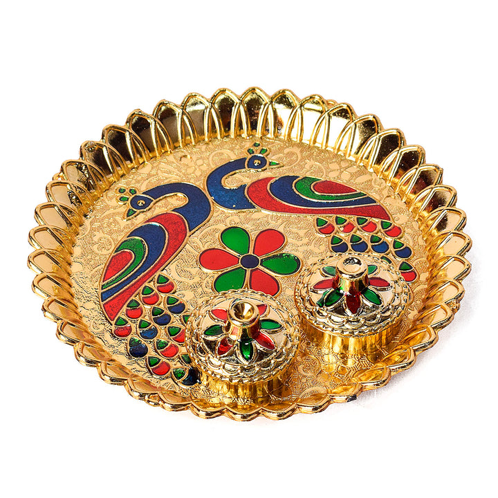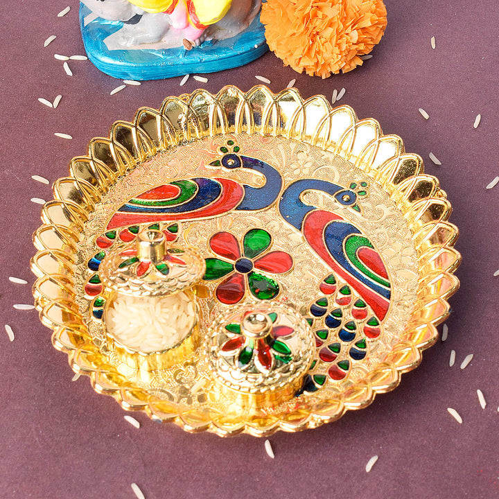 Shop | Roli Akshat Platter - Artistic Peacock Design | Satvikstore.in – satvikstore.in