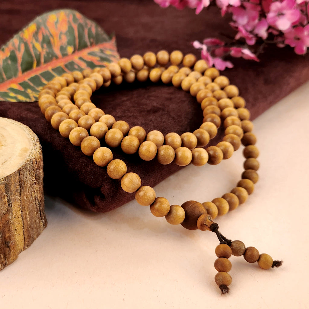 Certified 6mm 100% Original Authentic Mysore White Sandalwood (Chandan) Jap Mala