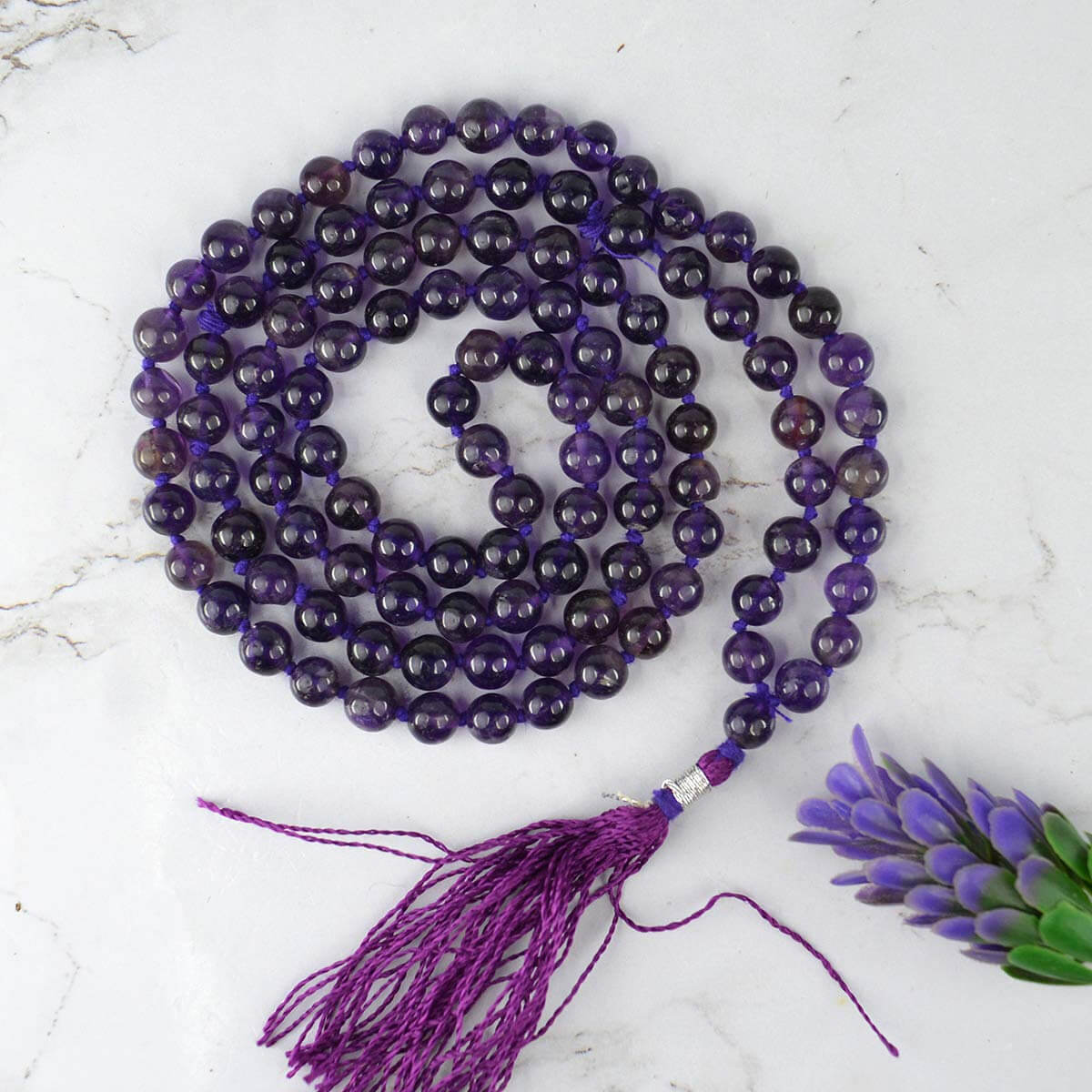 Amethyst Crystal Mala for Chakra Healing 6 MM – Satvikstore.in – satvikstore.in
