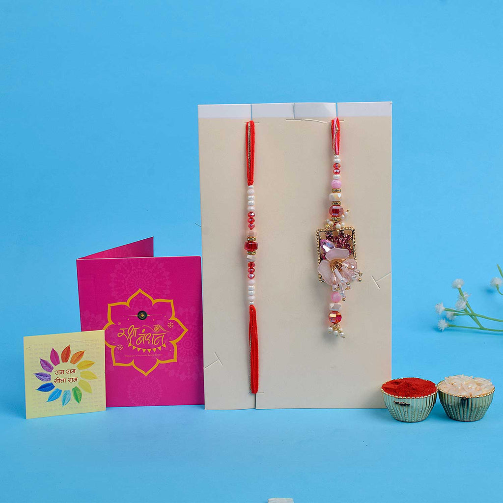 • Package: 1 Men Rakhi, 1 Women Lumba Rakhi, Roli Chawal Pack, Ram & Sita Theme Stickers
