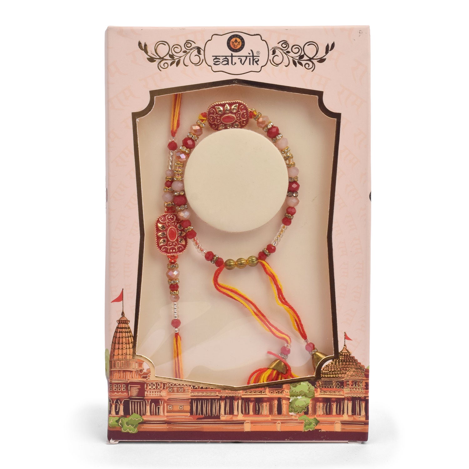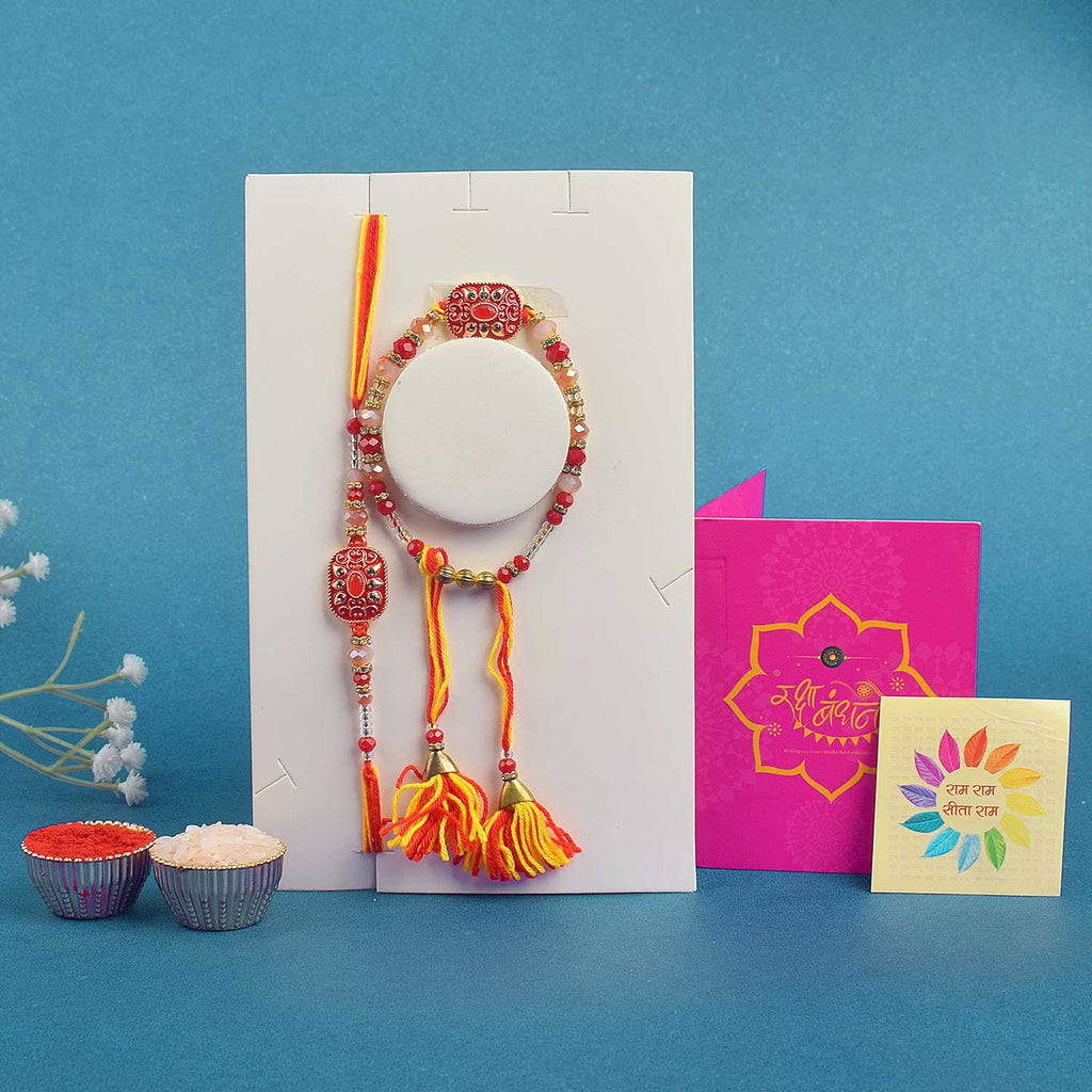 • Package: 1 Men Rakhi, 1 Women Lumba Rakhi, Roli Chawal Pack, Ram & Sita Theme Stickers