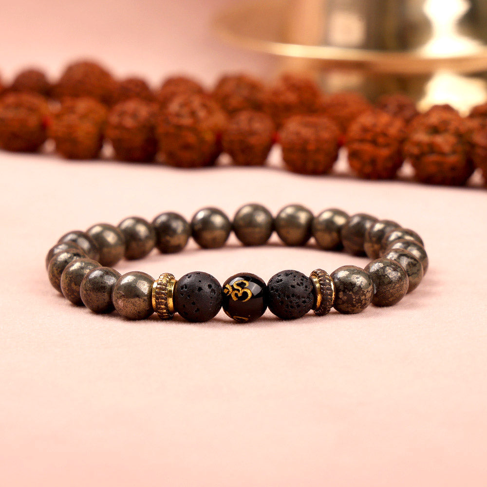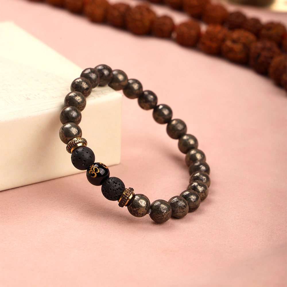 Buy Om Raw Pyrite Lava Healing Stone Bracelet | Satvikstore.in – satvikstore.in