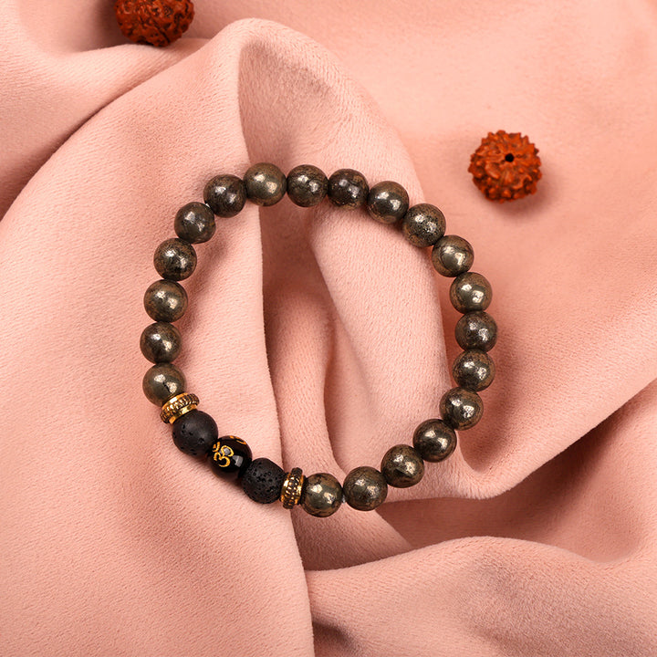 Om Raw Pyrite Bracelet | Lava Stone Om Bracelet | Pyrite Wealth Bracelet | Grounding Healing Stone Bracelet | Spiritual Om Crystal Bracelet | Prosperity Energy Jewelry