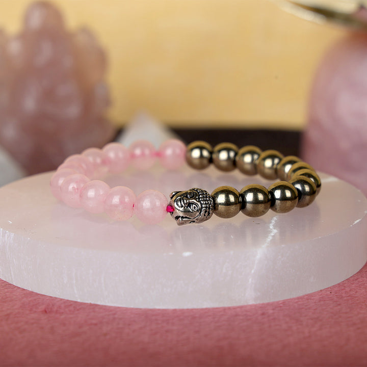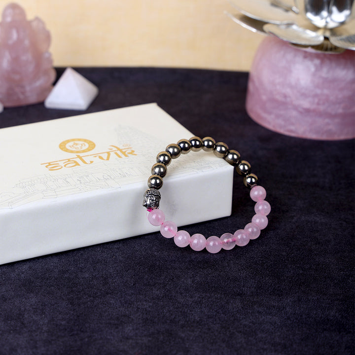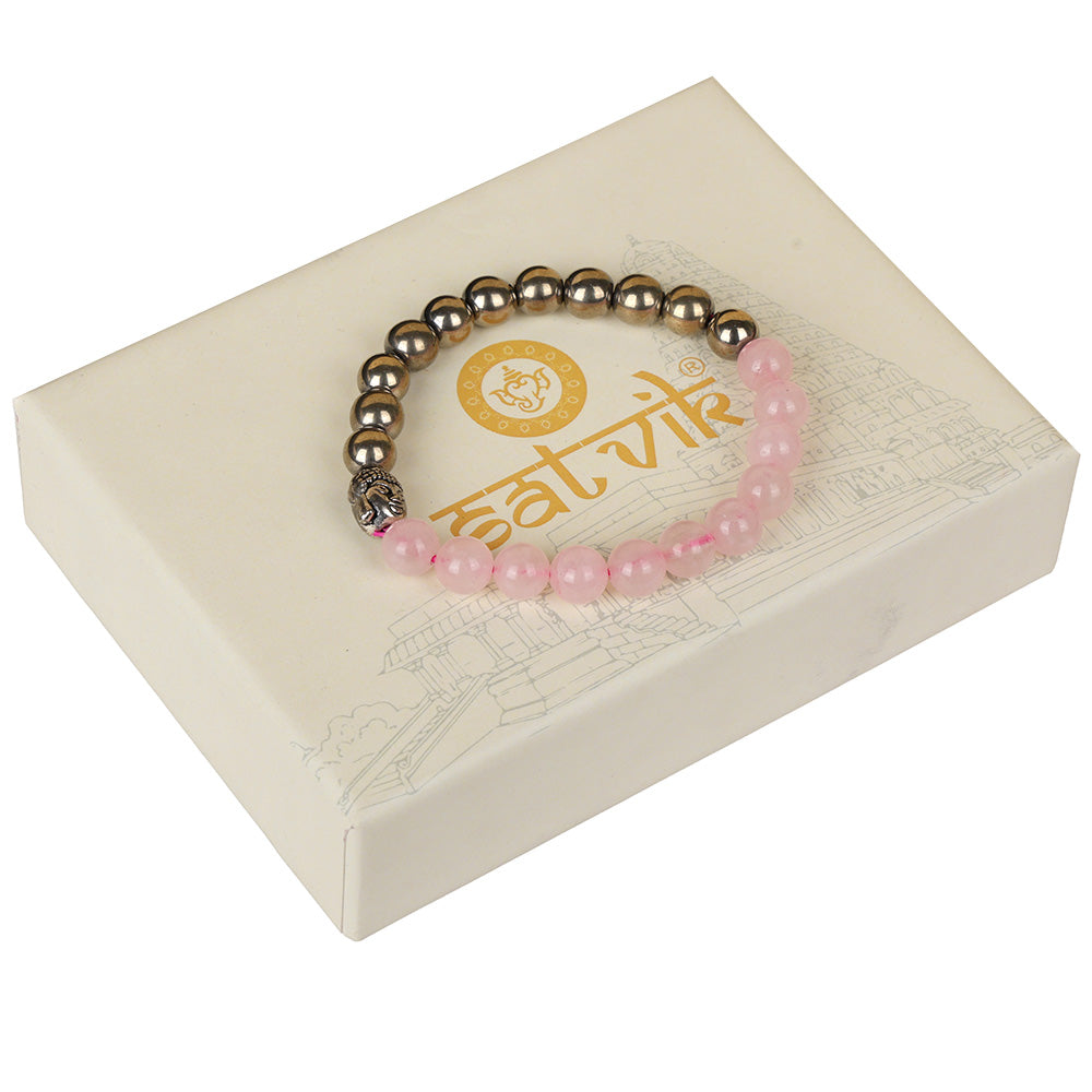 Buy Rose Quartz & Golden Pyrite Healing Stone Bracelet | Satvikstore.in – satvikstore.in