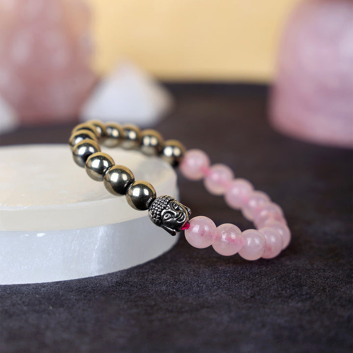 • Item Name: Rose Quartz & Golden Pyrite Healing Stone Bracelet