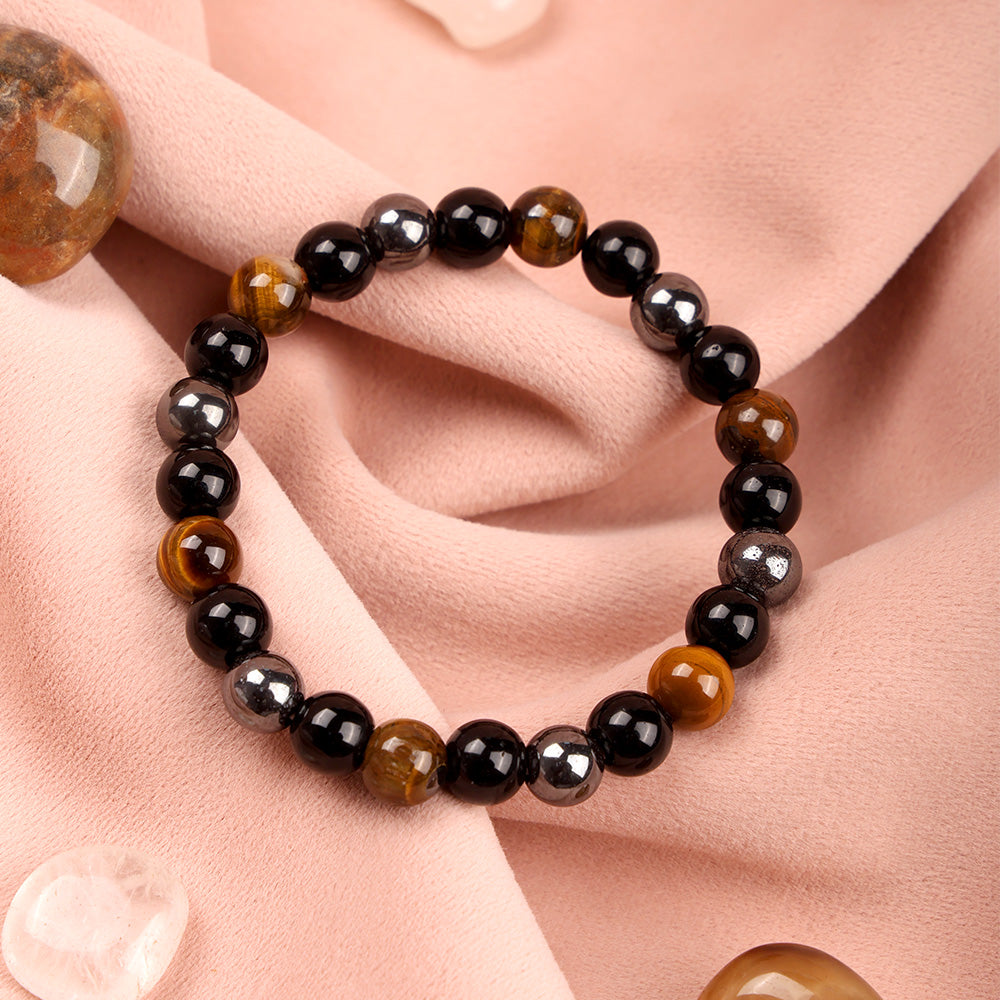 About the Product: The Tripal Protection Bracelet is a powerful healing stone accessory designed to provide strong energetic protection, grounding, and emotional stability. This bracelet is crafted using a protective combination of Black Tourmaline, Tiger’s Eye, and Hematite, each stone carefully selected for its ability to shield against negativity and strengthen inner balance.