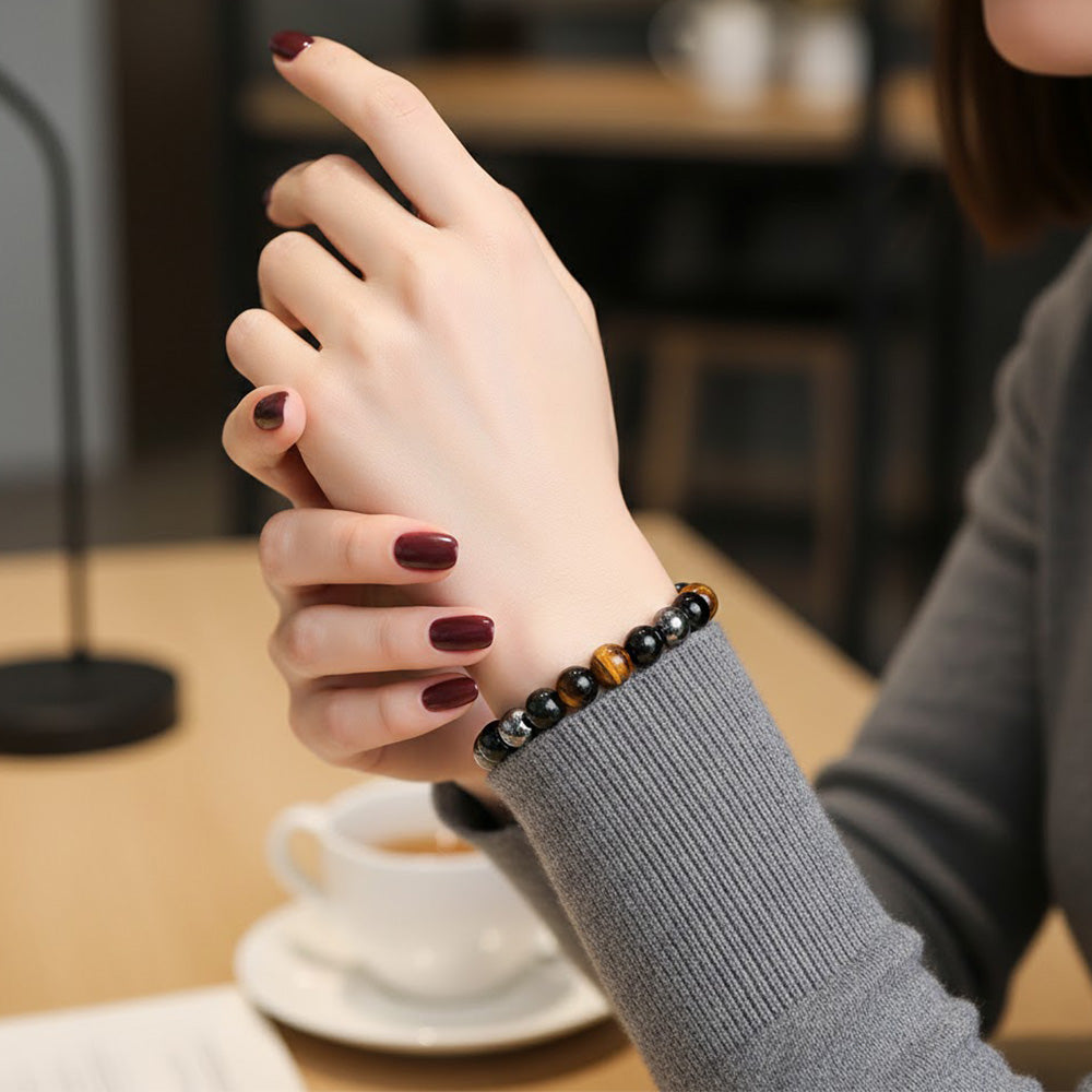 Black Tourmaline is known for absorbing negative energy and providing strong protection, Tiger’s Eye boosts courage and confidence, while Hematite provides grounding and stability. Together, these stones create a protective energy shield that helps maintain calmness, focus, and resilience in daily life.
