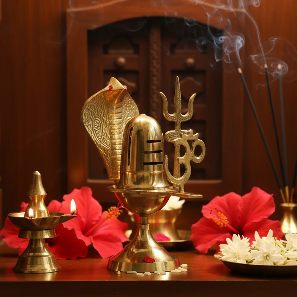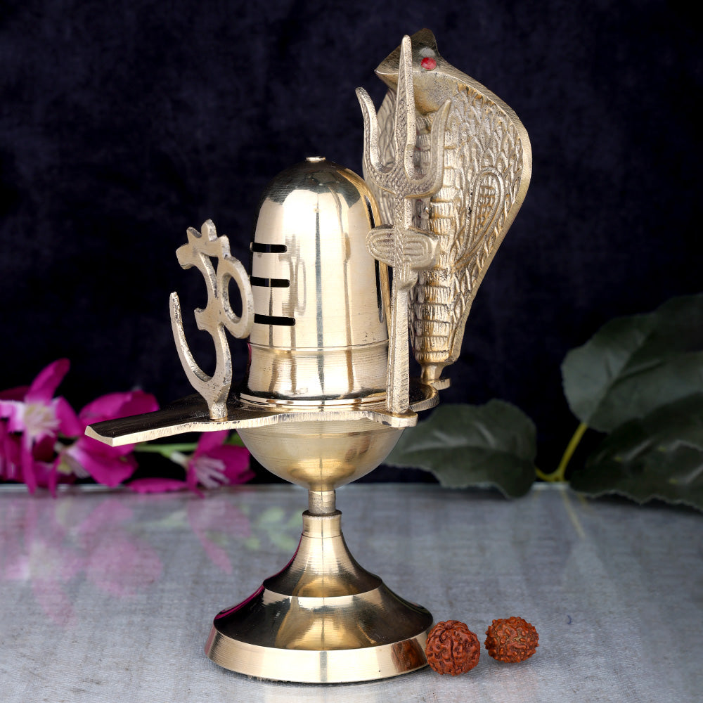 The Shivling symbolizes Lord Shiva, representing creation, protection, and transformation. Brass, known for its durability and spiritual purity, enhances the sanctity of worship and ensures long-lasting use. This traditional design stays true to age-old customs, making it suitable for religious ceremonies, festivals like Maha Shivratri, and auspicious occasions.