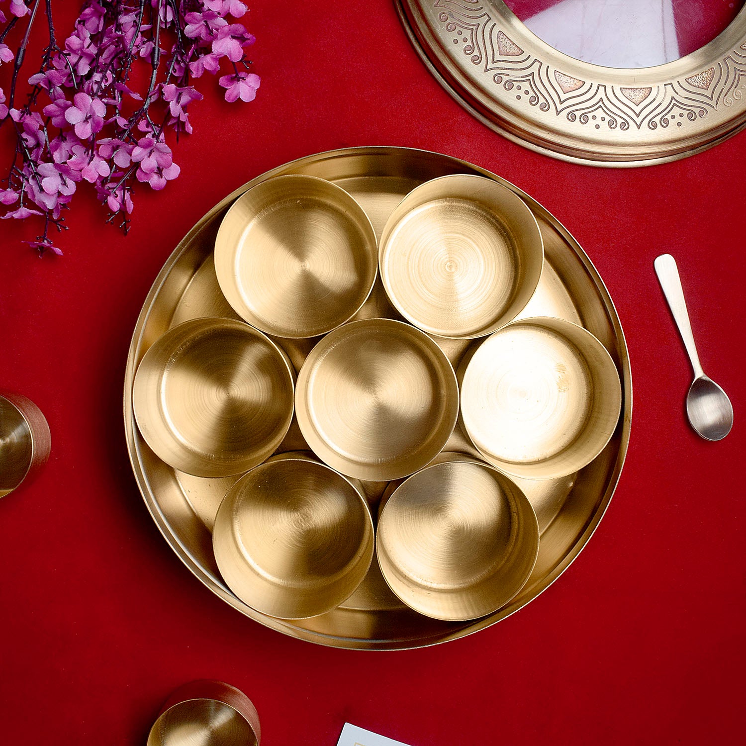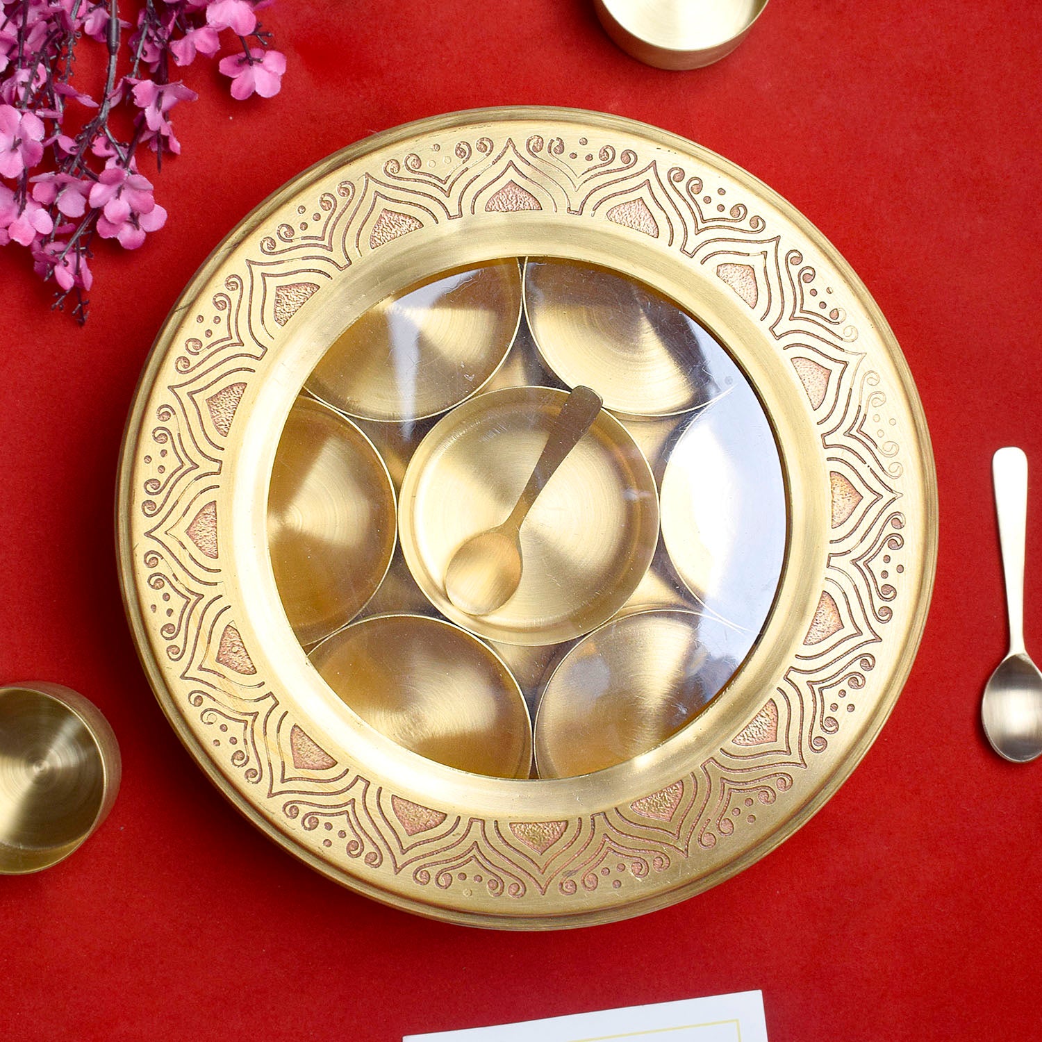 Premium Brass Pooja Samagridaan | Brass Pooja Set | 7 Containers Puja Organizer | Brass Puja Samagridaan | Puja Organizer Set | Pooja Storage Set | Brass Ritual Samagridaan | Pooja Essentials Set | Pooja Container Set | Brass Pooja Tray with Spoon | Ritual Organizing Set | Pooja Samagridaan with Lid | Brass Puja Samagridaan with Spoon | Pooja Storage with Glass Lid | Complete Pooja Setup | Premium Puja Organizer | Brass Pooja Accessories | Brass Pooja Set with Lid and Spoon