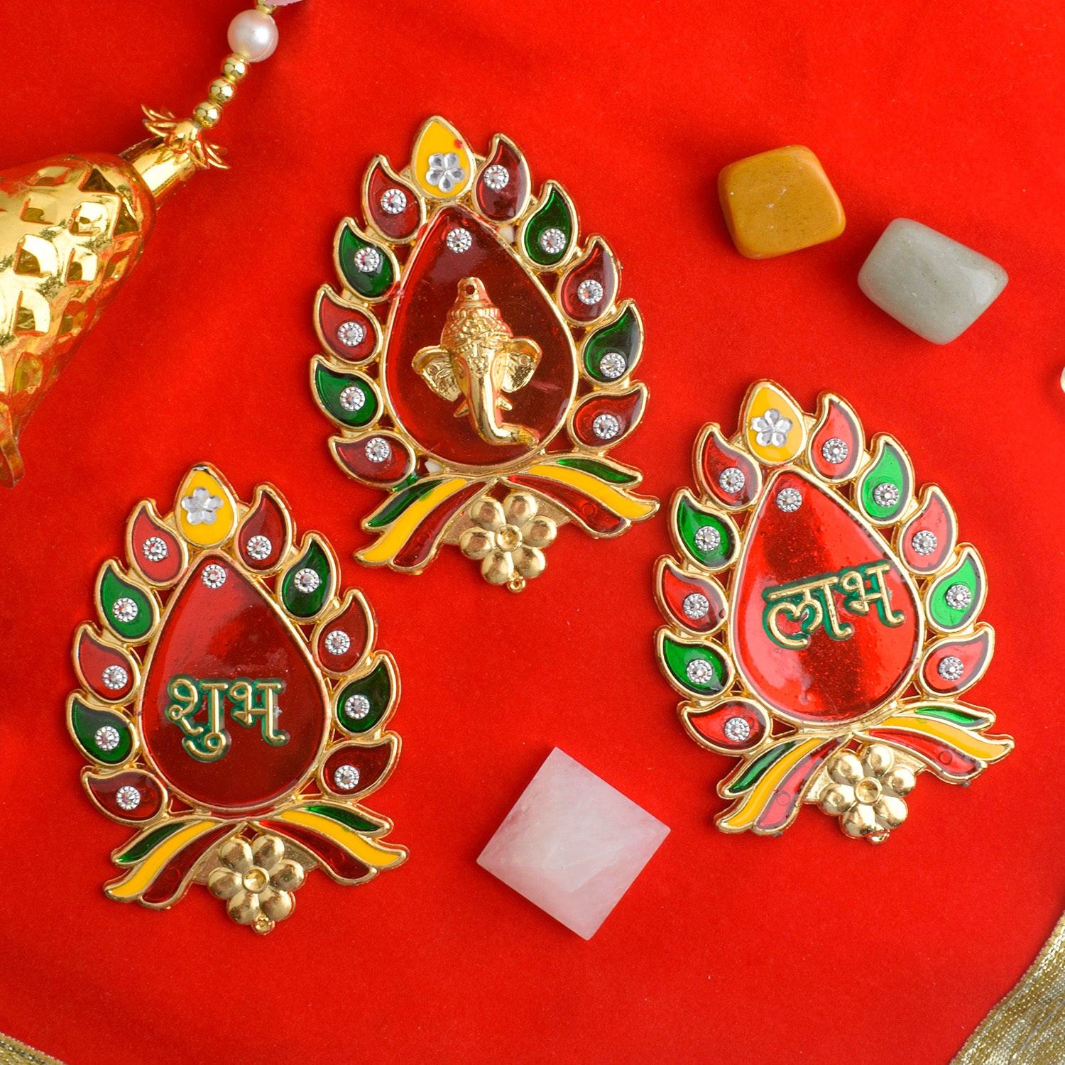 Item Name: Beautiful Leaf Shubh Labh and Ganesh Stickers  Set of 3
