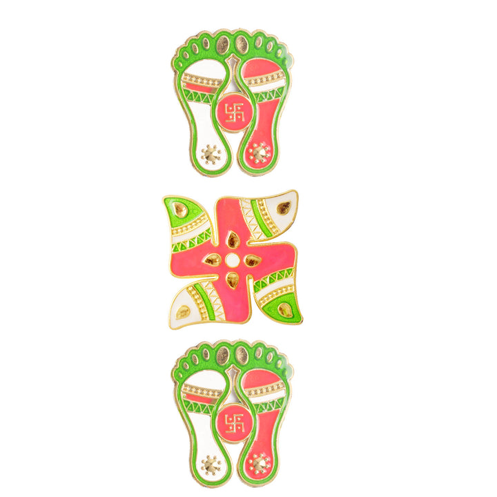 Celebratory Glow Swastik and Charan Paduka Stickers Set of 3