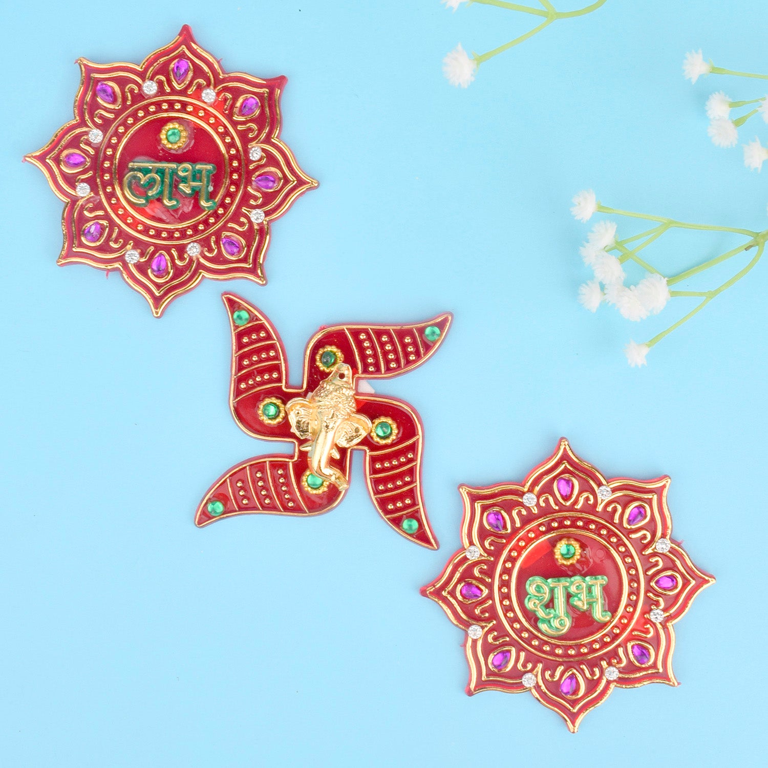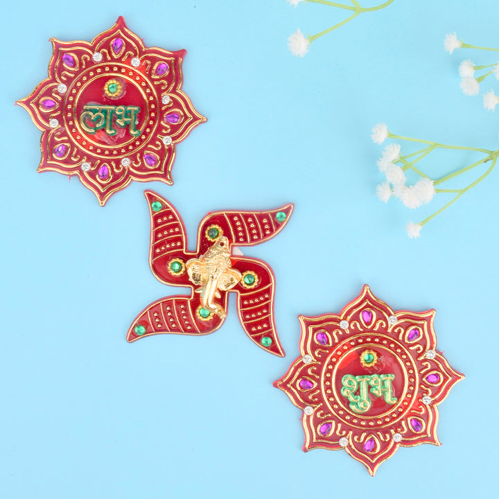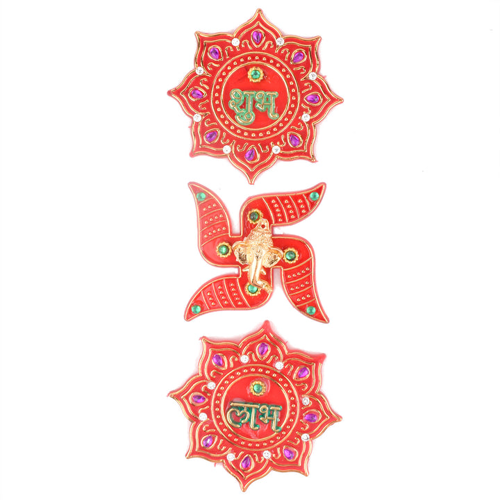 Item Name: Elegant Red Kalash Shubh Labh and Swastik Stickers s Set of 3