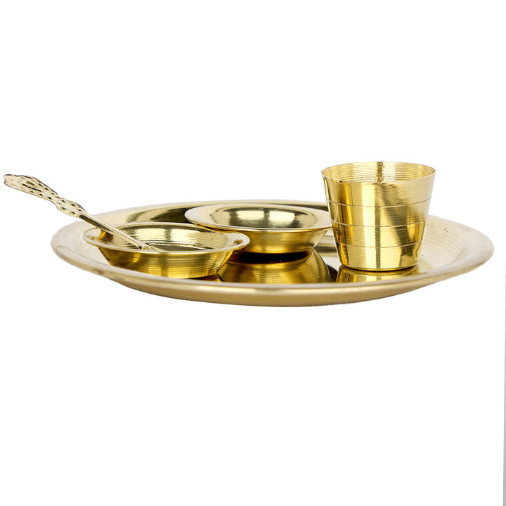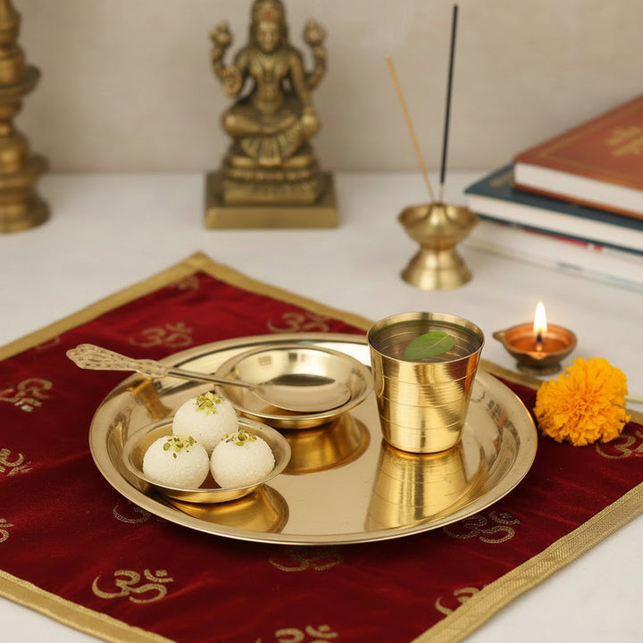 • Material: The Brass Puja Thali is made from High-Quality Brass Material