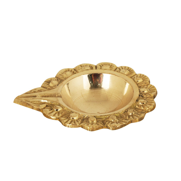 buy | Adorable Floral Brass Laxmi Diya| satvikstore.in