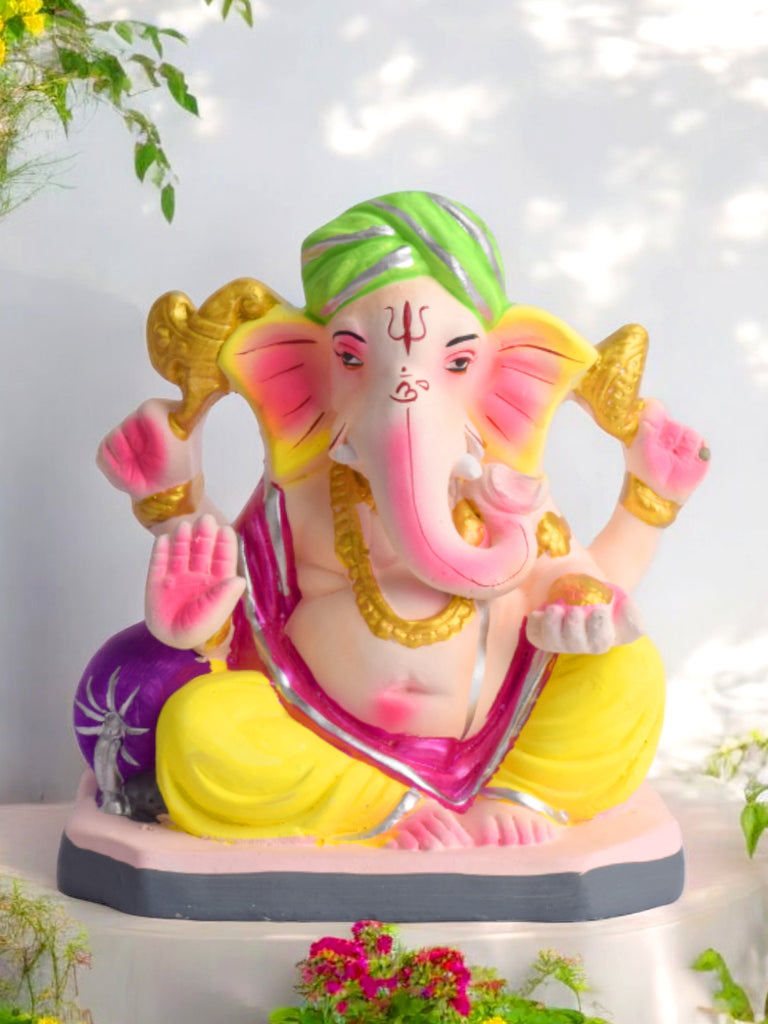 These true eco friendly idols are also available in multi-colour options in red, white, yellow, green, white, pink, purple, blue, orange, gold, and other vibrant colours at the best price compared to the market online and come in beautiful packaging to gift to your relatives and friends. Eco-Friendly Ganesha Idols are available in the Latest and Designer Collection of 2024 with Pagdi Ganesha, Mukut Ganpati, Ganeha Sitting in Chair Singashan, Bal Ganesha, Standing Ganesha, Lal Bagh ka Raja Eco Friendly Ganesha, Lalbaugcha Raja Eco Friendly Ganesha and Many More.