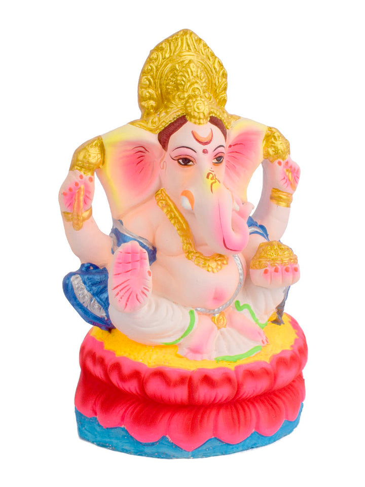Eco Friendly Ganesha statues are made of 100% biodegradable and eco-friendly material by using Shadu Mati Clay Mitti, which dissolves easily in water. The colours used are also natural, and they decompose and dissolve in water easily. Although they have been made all across India, West Bengal and Maharashtra often employ skilled artisans to make them.