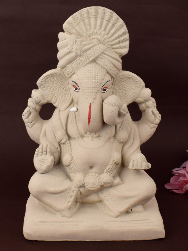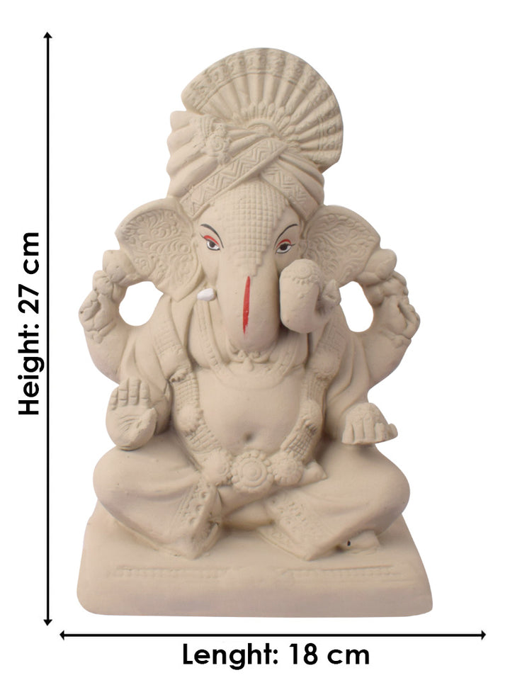 Sarvadevatman Ganesha Idol | Eco-Friendly Ganpati with Pagdi | 10.6 Inch Clay Ganesh Murti | Shadu Mati Ganpati | Biodegradable Ganpati Idol | Natural Clay Ganesha | Pagdi Wale Ganesh Idol | Sustainable Ganesh Idol |