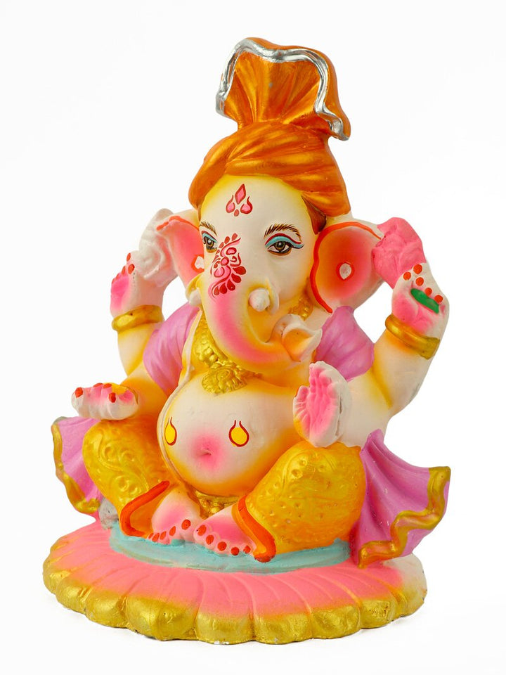 Eco Friendly Ganesha statues are made of 100% biodegradable and eco-friendly material by using Shadu Mati Clay Mitti, which dissolves easily in water. The colours used are also natural, and they decompose and dissolve in water easily. Although they have been made all across India, West Bengal and Maharashtra often employ skilled artisans to make them.