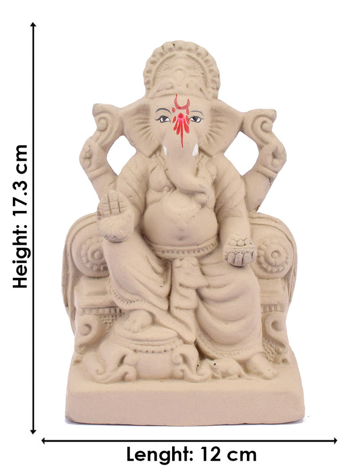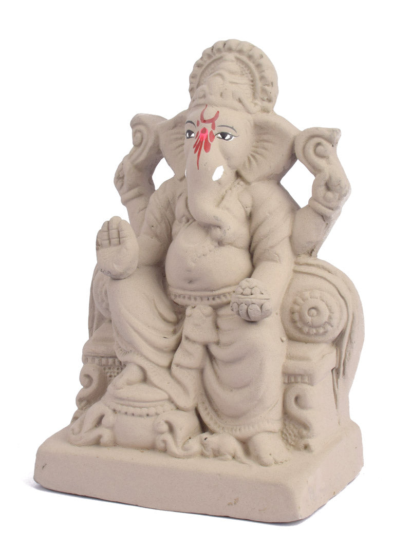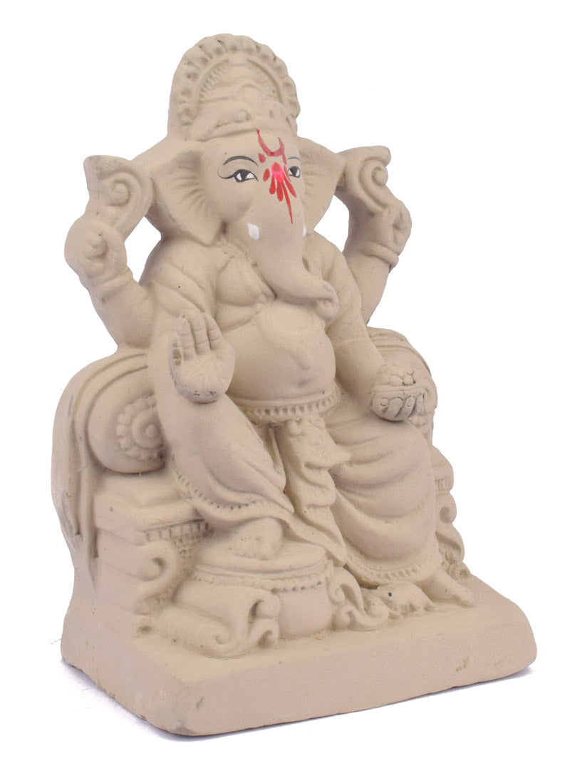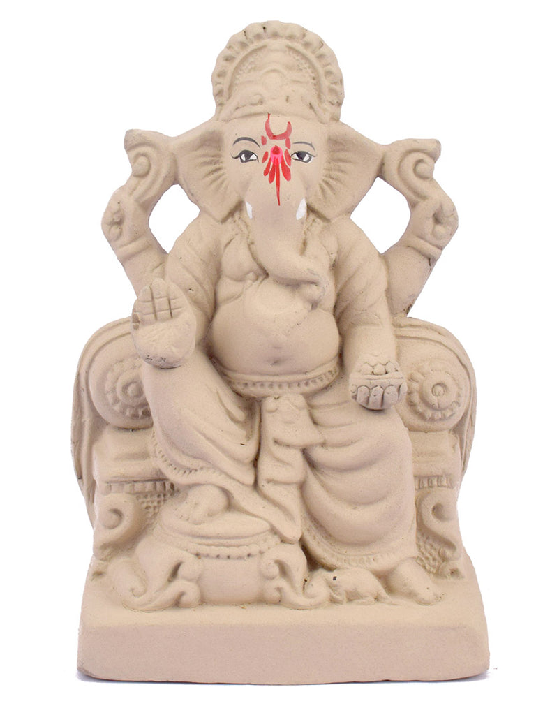Eco-Friendly Ganesha Idol | Shadu Mati Ganpati | Clay Ganesh Idol | Green Ganpati Idol | 7 Inch Eco-Friendly Ganpati | Singhasan Eco-Friendly Ganesha | Sustainable Ganesh Murti | Organic Ganpati for Home |