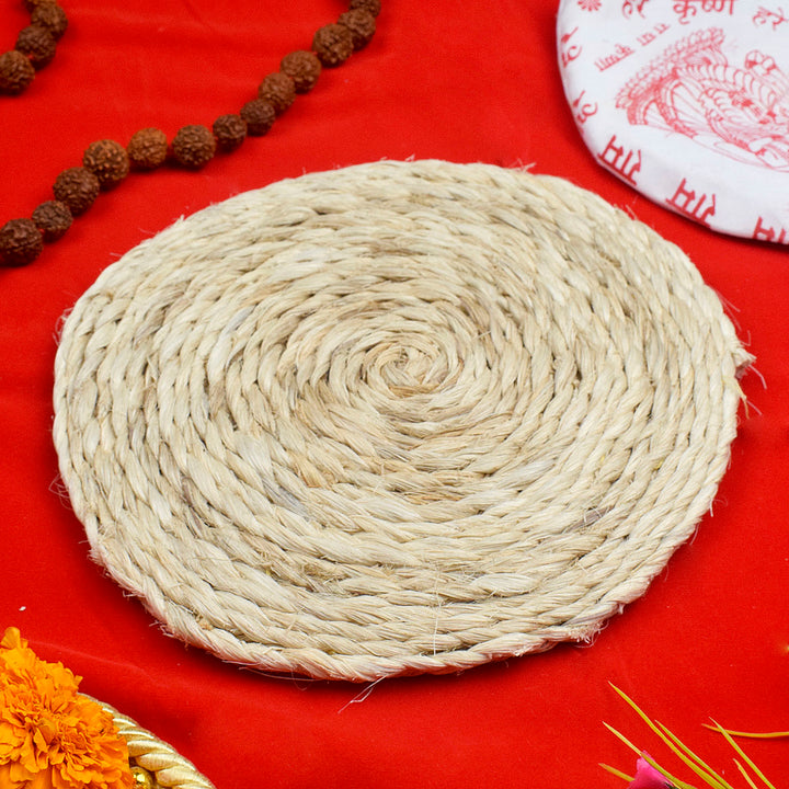 Auspicious Banana Stem Fiber Asan for Sacred Statues in the Mandir (8 Inch)