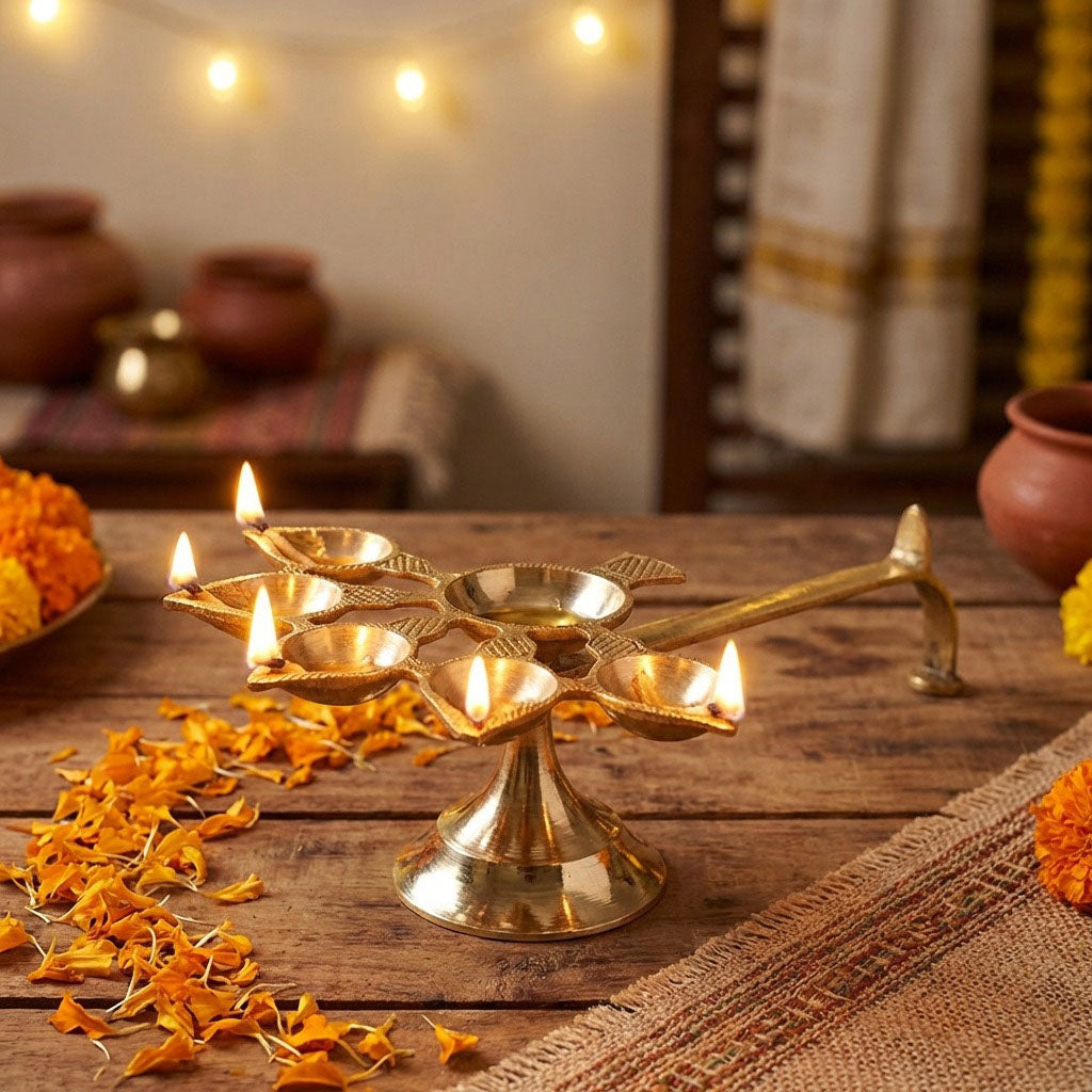 From Kerala Kuthu Vilakku brass to Panchmukhi Peacock Diyas, find everything you need for auspicious beginnings. Our products are trusted by customers across India and abroad.