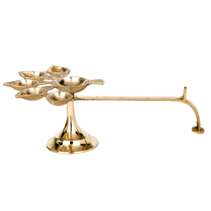 Brass 5 Mukhi Aarti Diya with Handle