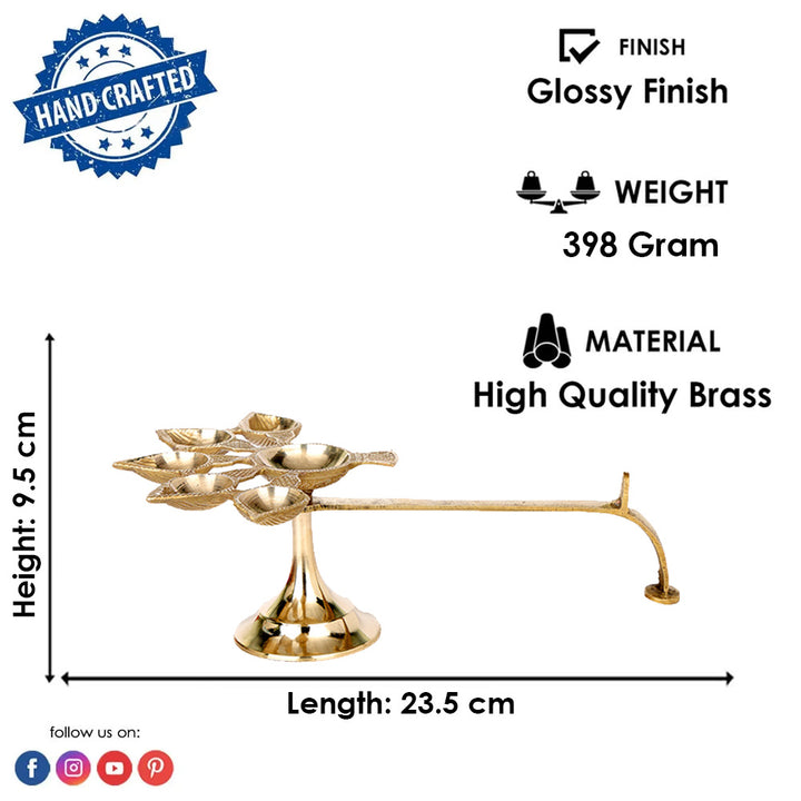 • Item Name: Brass 5 Mukhi Aarti Diya with Handle
