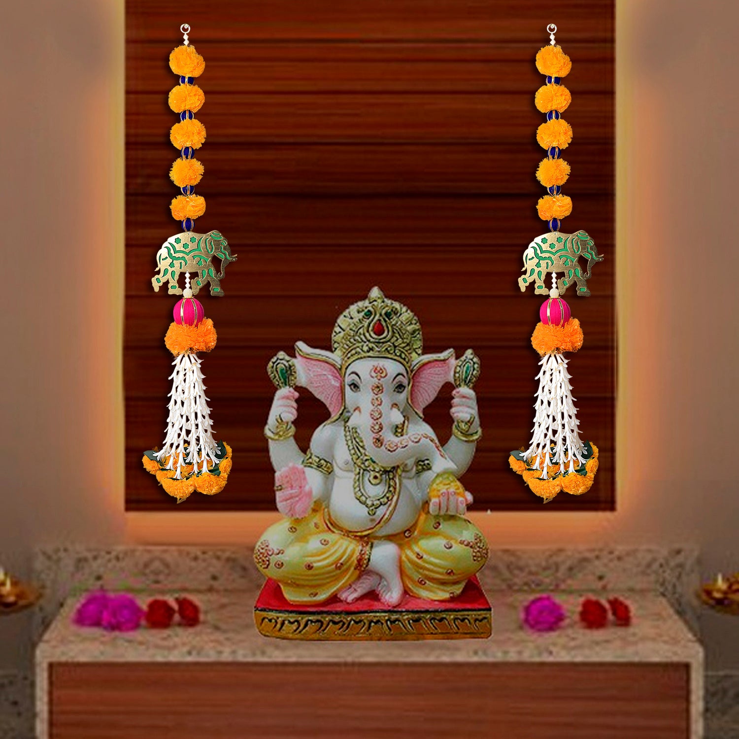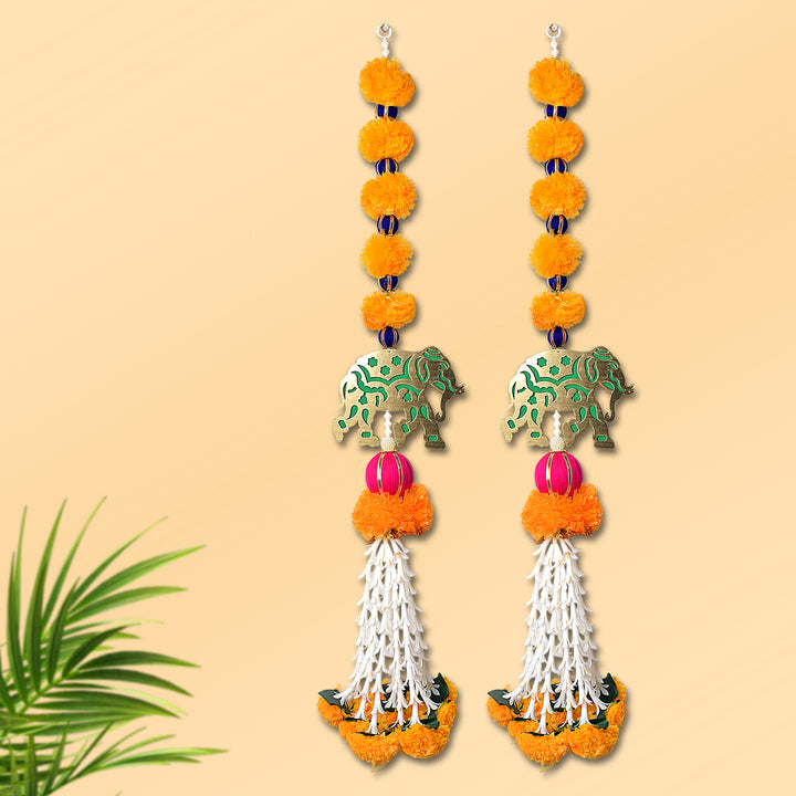 Item Name: Artificial Marigold Flowers with Elephant Wall Hanging Latkans For Wall Decoration Decoration