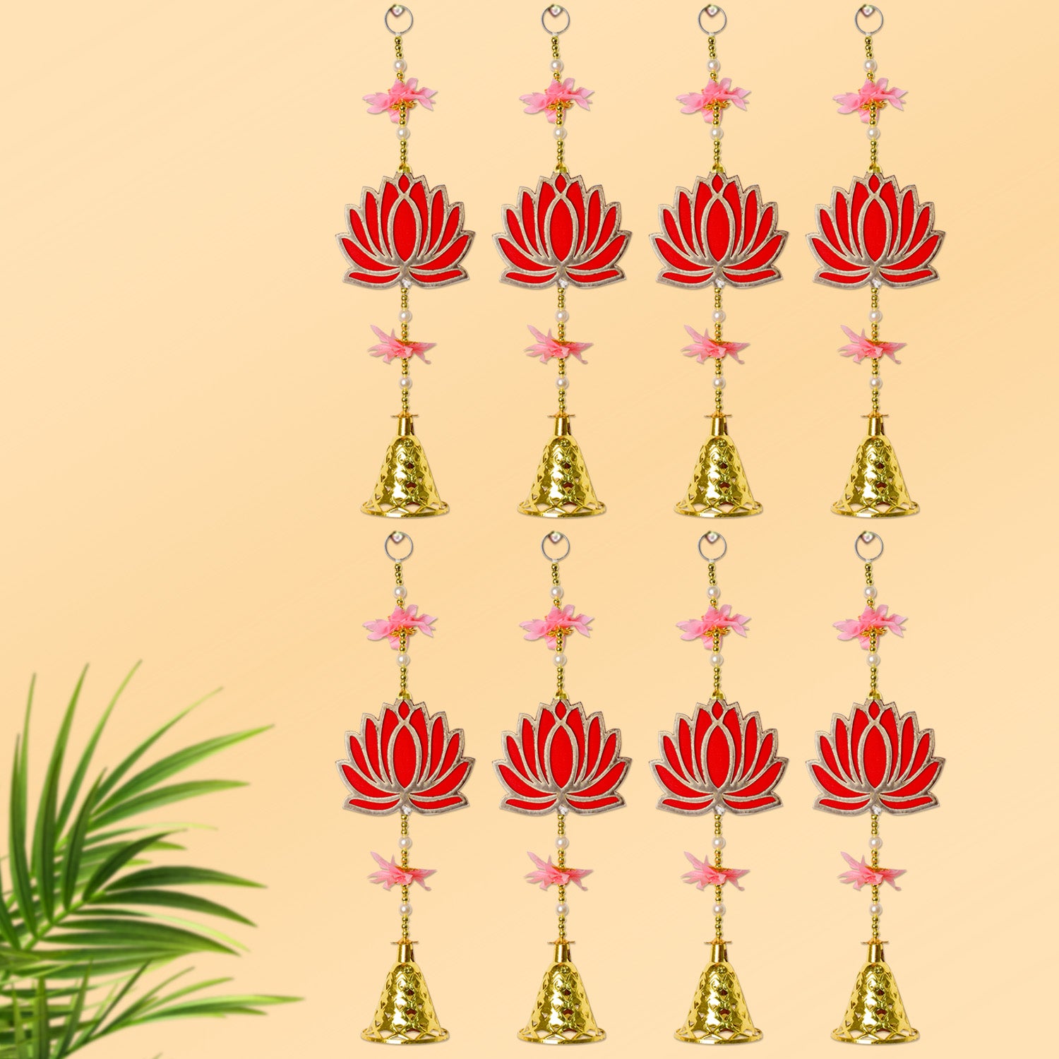 Attractive 1 Tier Lotus with Bells Wall Hanging Backdrop (4Pair Latkans) For Wall Decoration