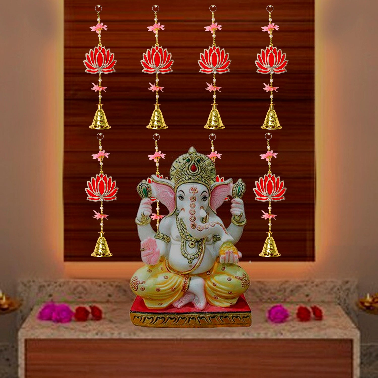 Item Name: Attractive 1 Tier Lotus with Bells Wall Hanging Backdrop (4Pair Latkans) For Wall Decoration