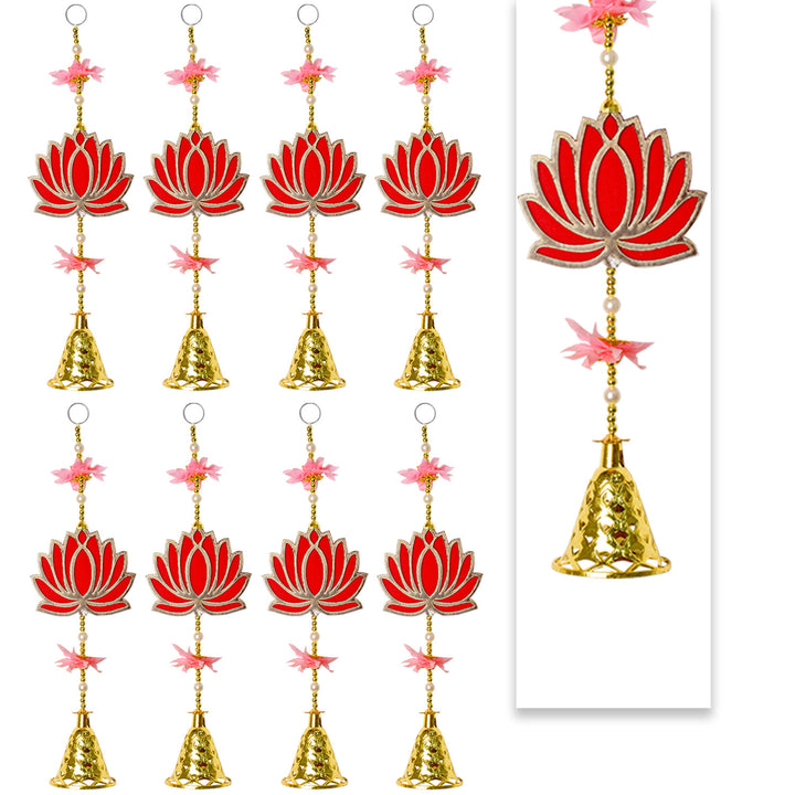 Attractive 1 Tier Lotus with Bells Wall Hanging Backdrop(4Pair Latkan) – satvikstore.in