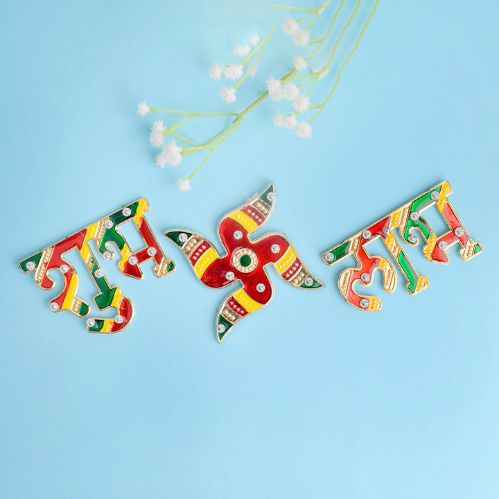 Shubh Labh Leaf With Swastik Wooden StickerPackage Contains: 1 Pair of Shubh Labh and 1 Swastik Sticker
