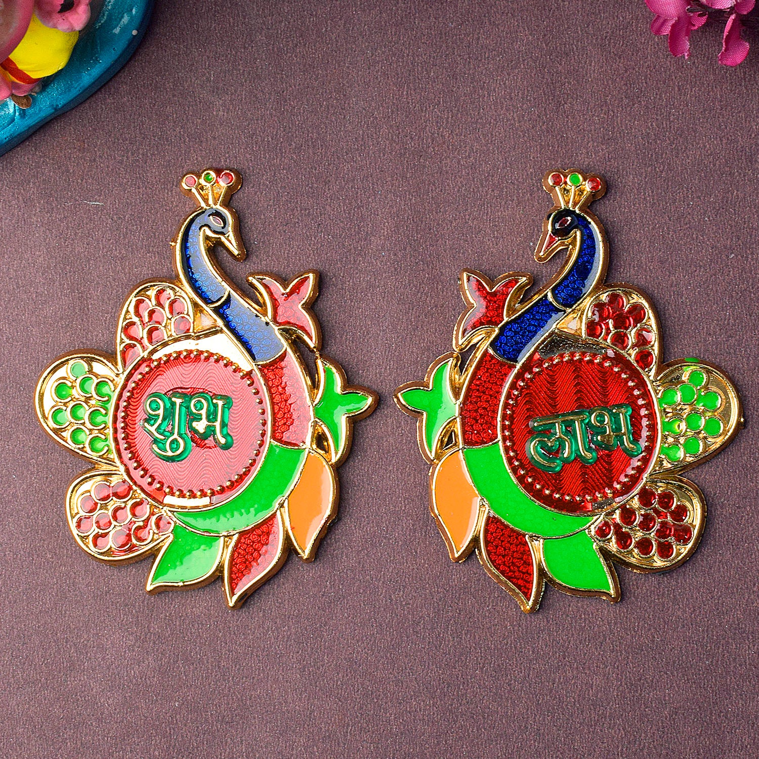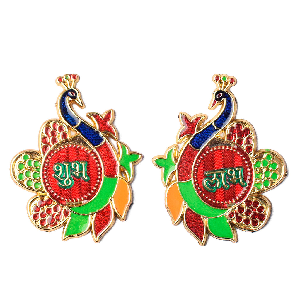 Item Name: Shubh Labh Wall Stickers Adorned with Peacock Charm