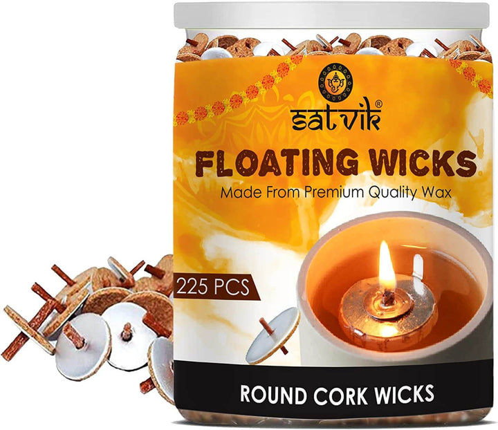 SATVIK 225 Pc Round Floating Wicks for Oil Cups with Cork Disc Holders