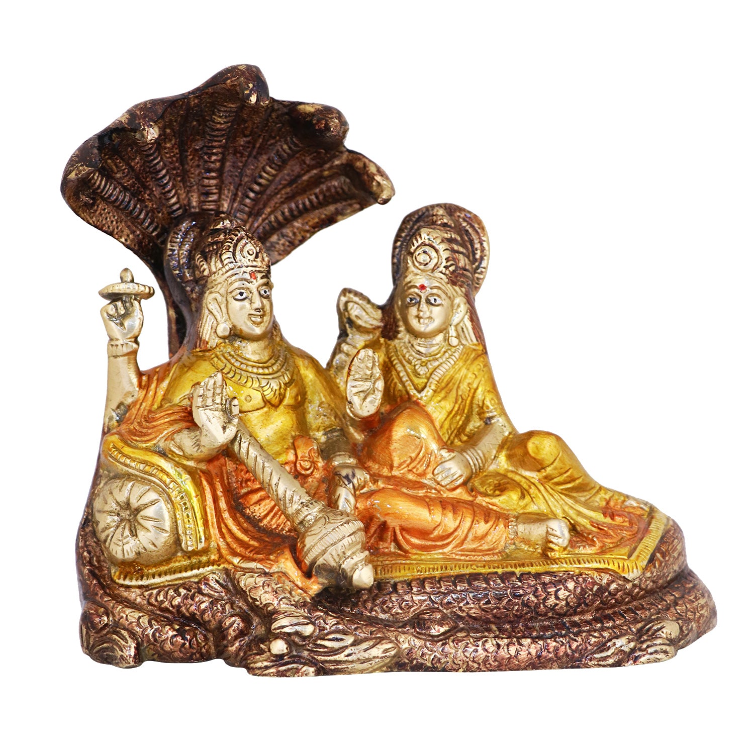 Brass Vishnu Laxmi Idol | Handcrafted Brass Vishnu Laxmi Statue | Colored Vishnu Laxmi Idol | Brass Vishnu Laxmi Resting on Shashnag | Brass Laxmi Narayan Idol | Puja Room Decor | Brass Vishnu Laxmi Idol for temple Decor |