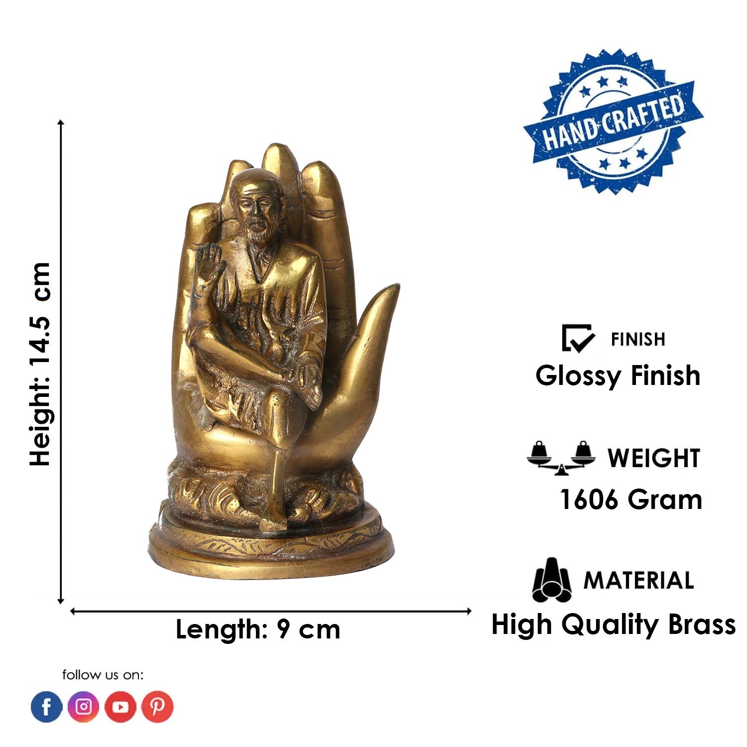 • Material: The Sai Baba Murti is made from High high-quality brass Material.
