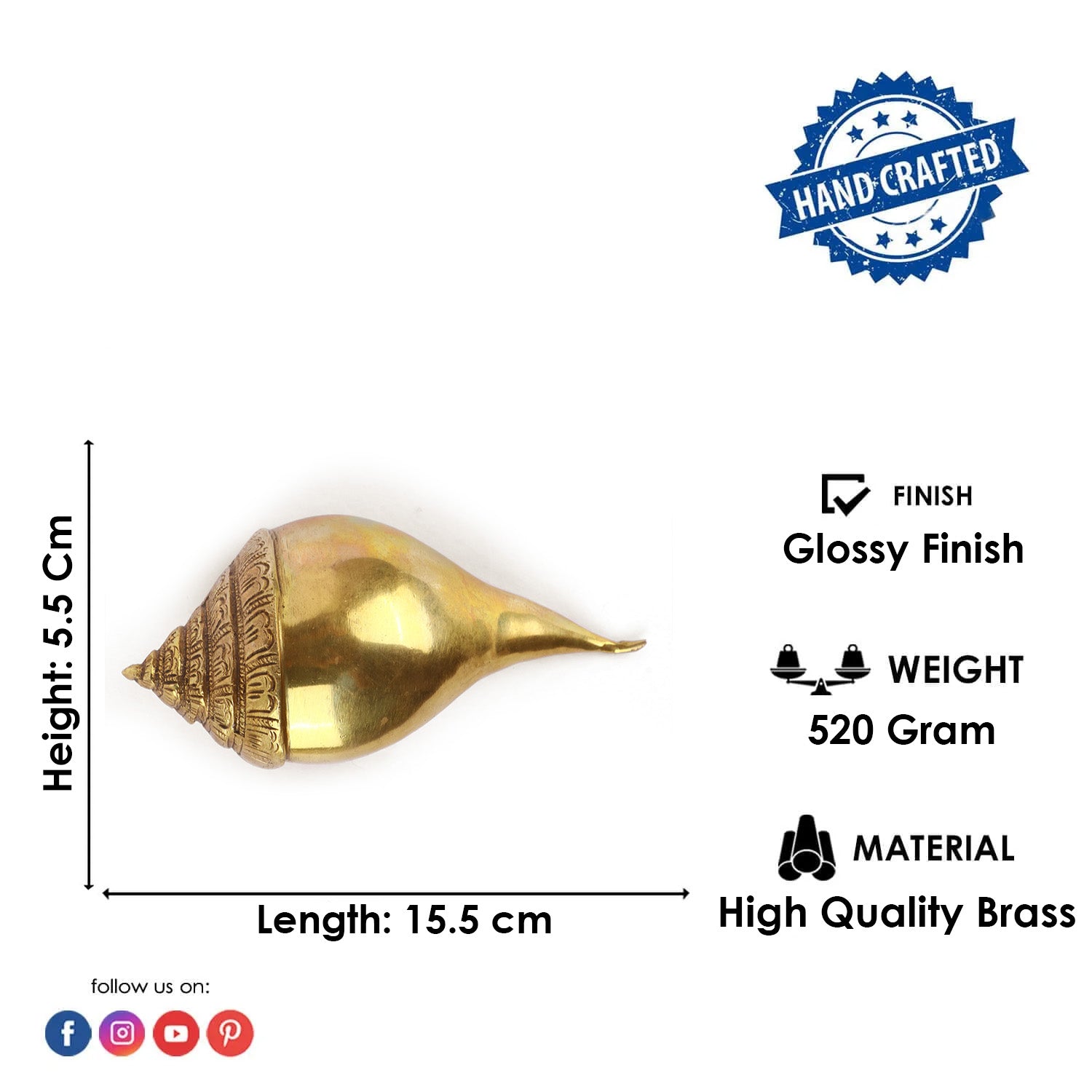 • Item Name: 2.1 Handcrafted Brass Shankh