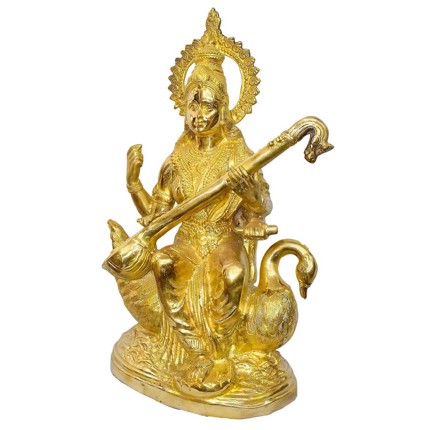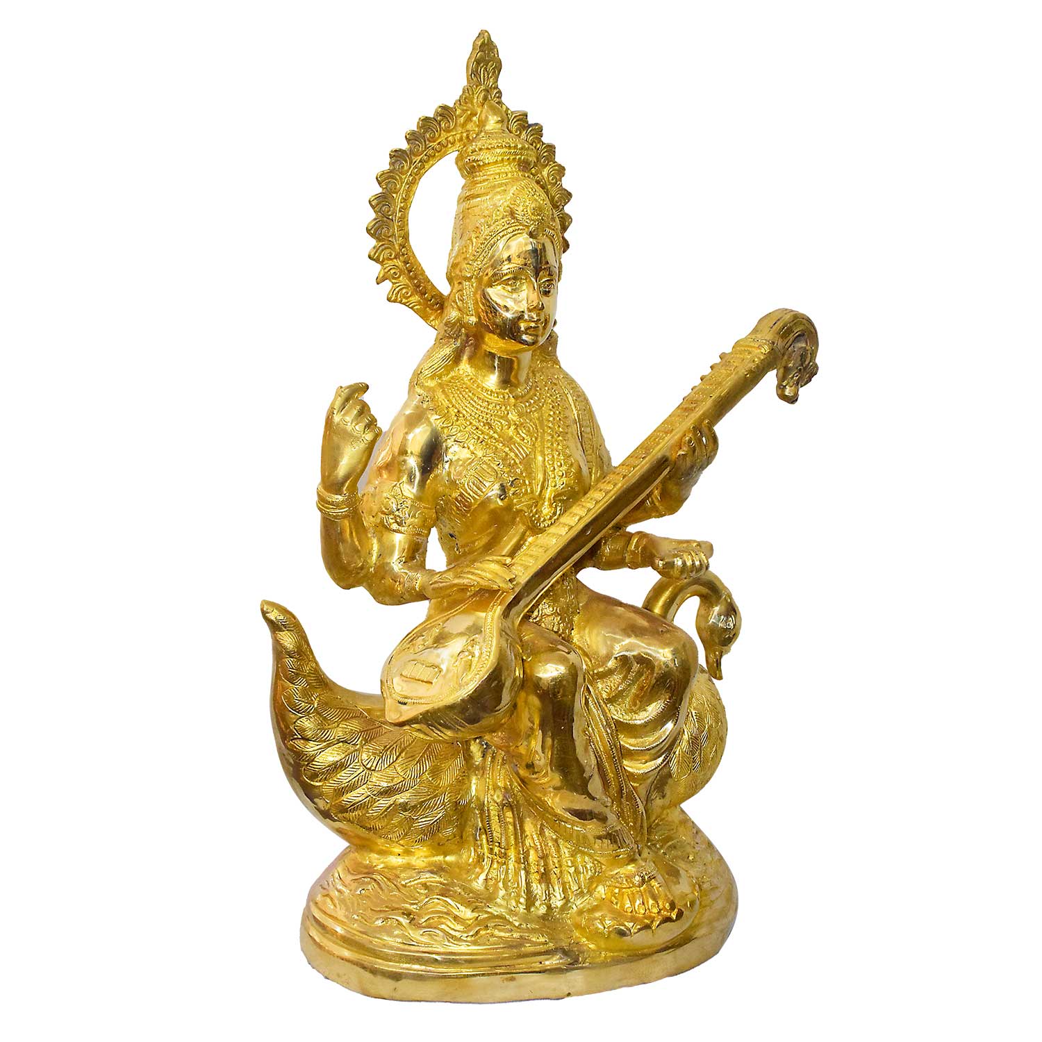 Shop | Large Brass Saraswati Mata | Buy Online | Satvikstore.in – satvikstore.in