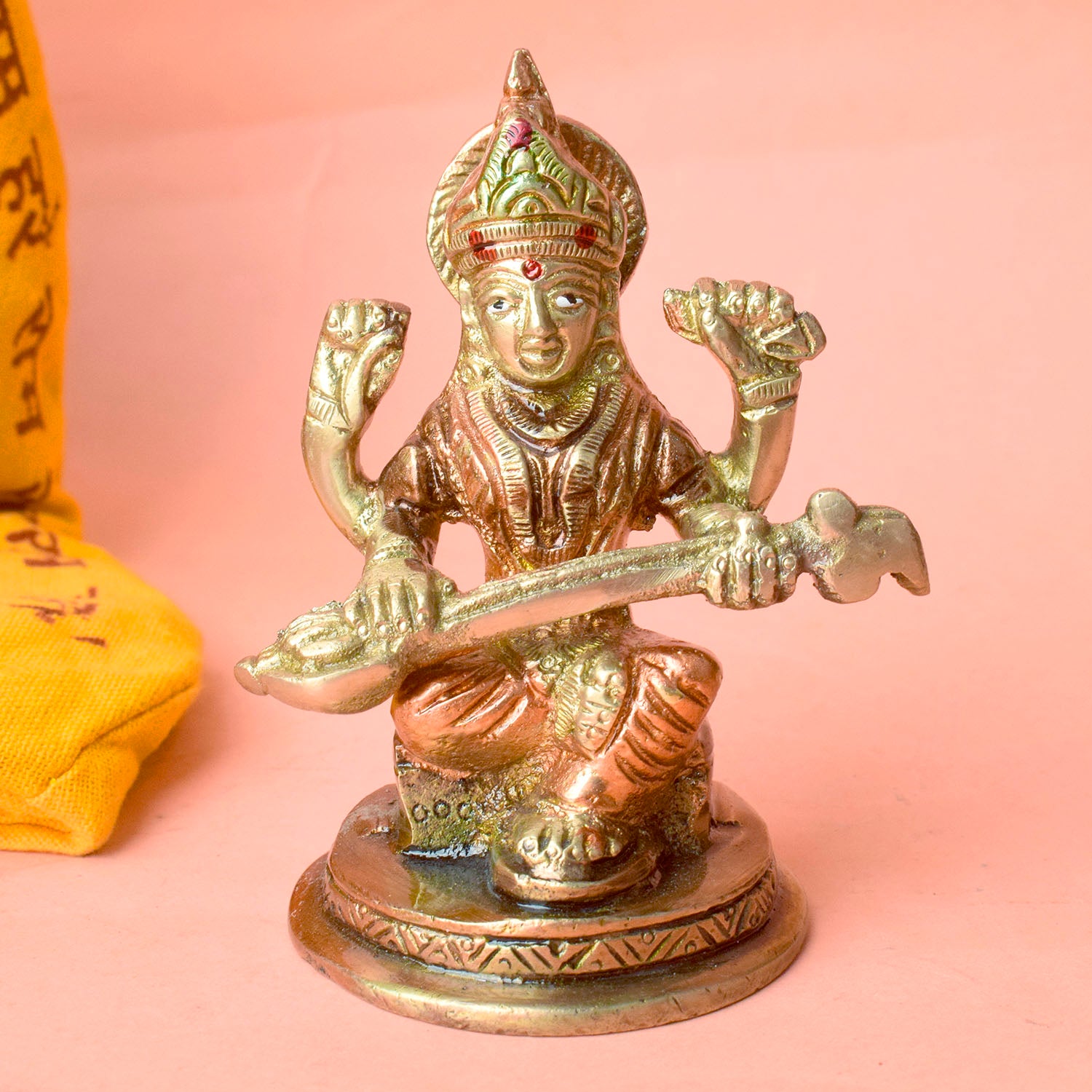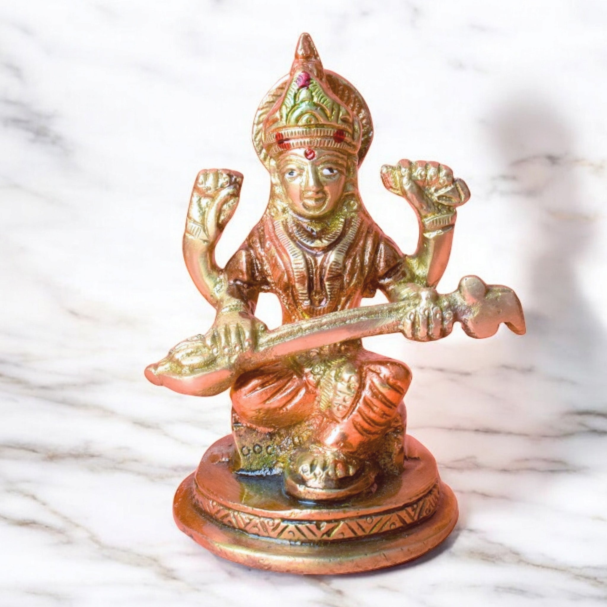 • Material: The Saraswati Mata Murti is made from High-Quality Brass Material